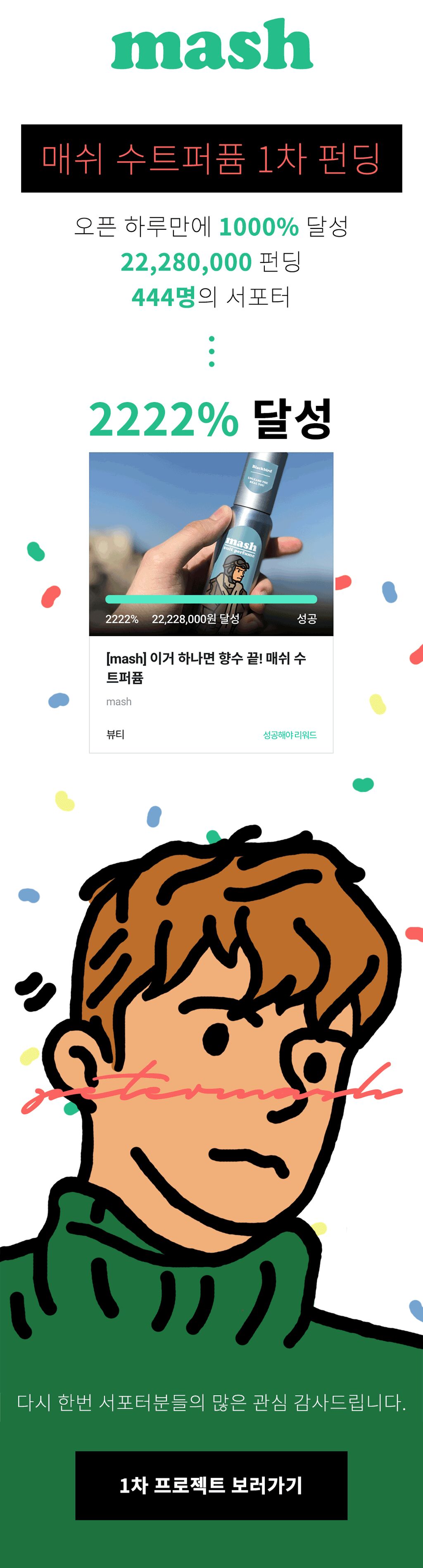 이처럼 매쉬 제품을 받아보시고 많은 분들이 관심을 가져 주신 덕분에 빠른 기간내에 앵콜 펀딩을 진행하게 되었습니다.