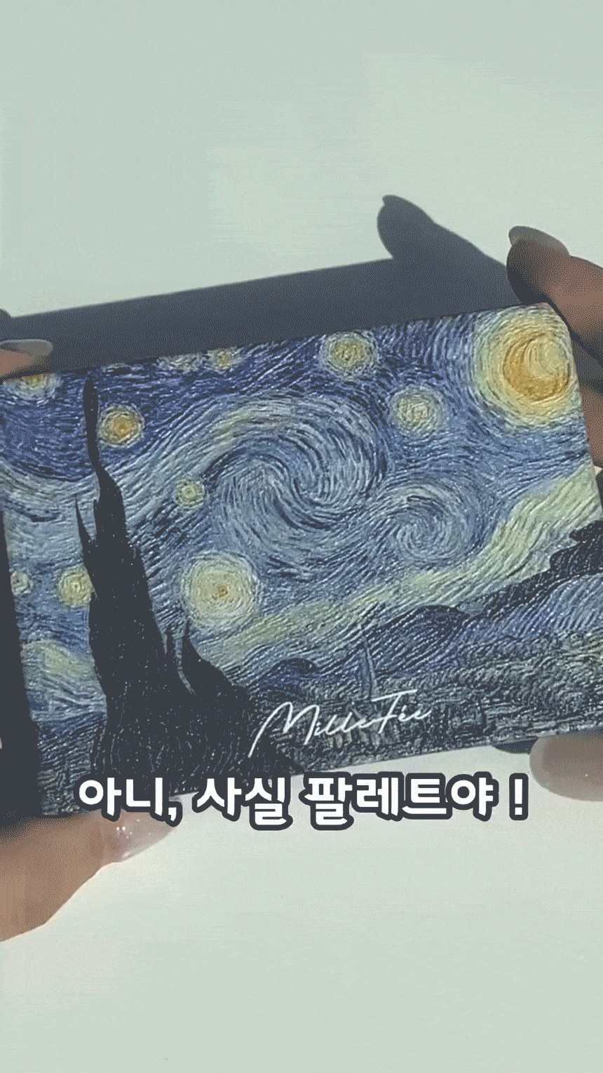 ゴッホの絵画にインスパイアされたアイシャドウパレット。目元にきらめく星降る夜のような、幻想的で鮮やかな名画の色彩。日本のメイクブランド・ミルフィの逸品をぜひ。