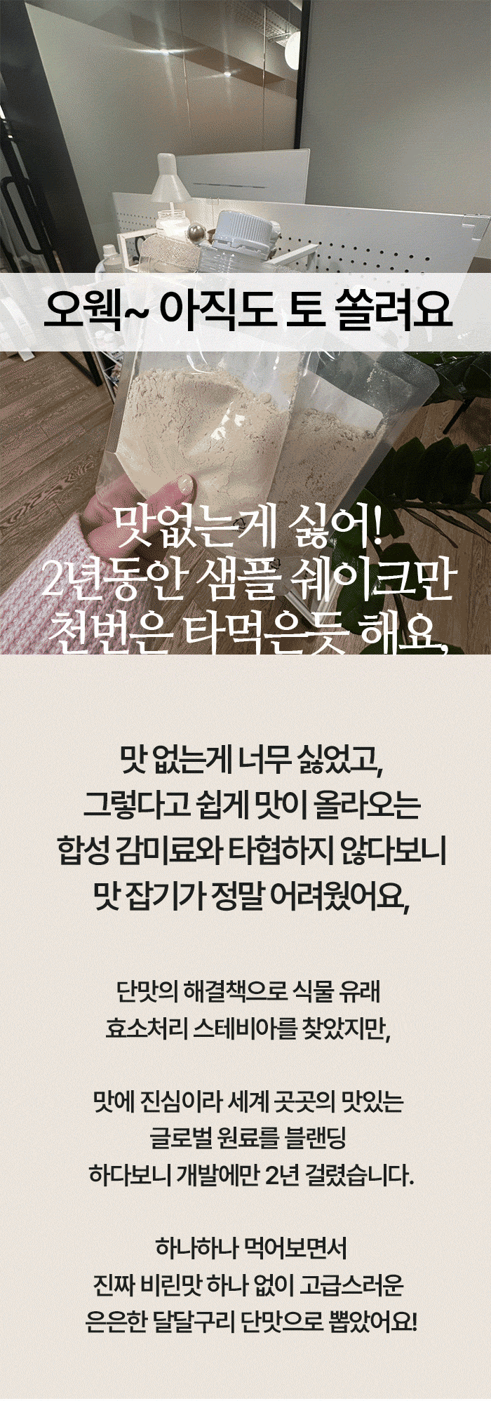 2년 여를 달려왔습니다. 본질을 보기 위해 수 없이 많은 건강식품들을 살펴보았고, 우리의 일상을 고민했습니다. 그렇게 탄생한 여러분들에게 소개해 드리고 싶어요.