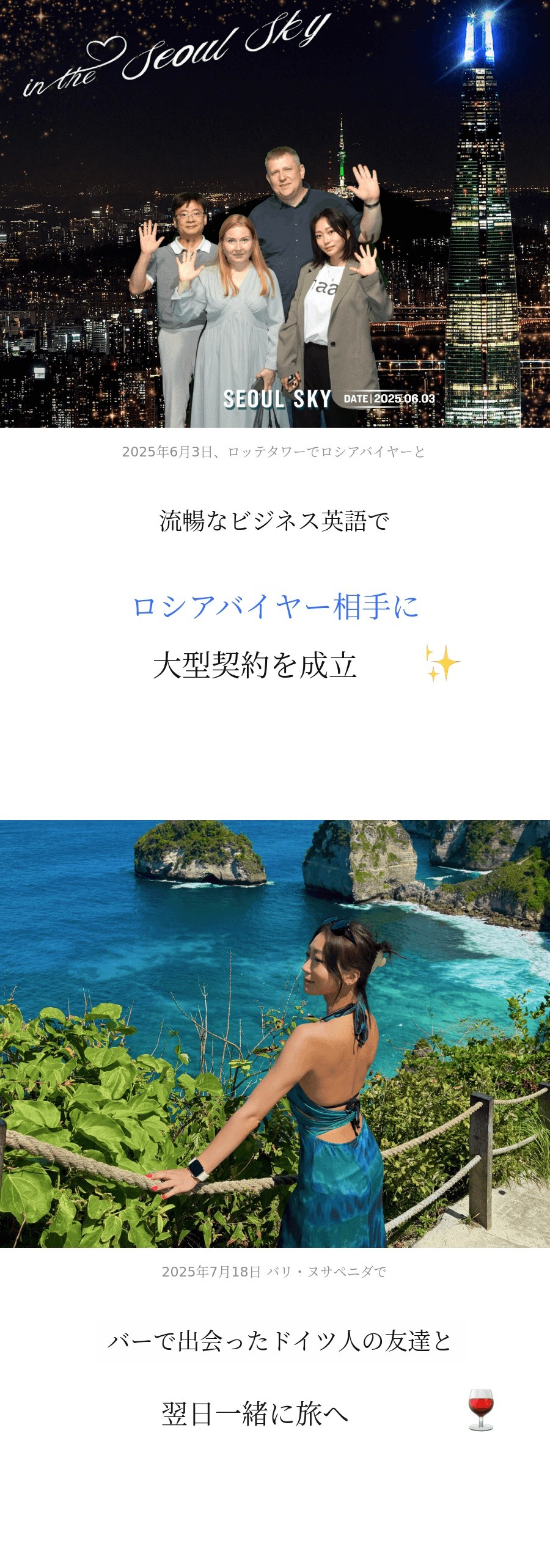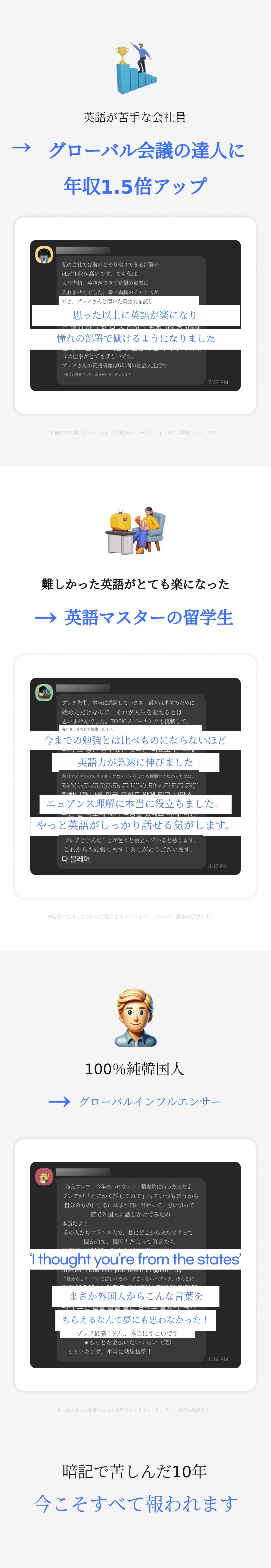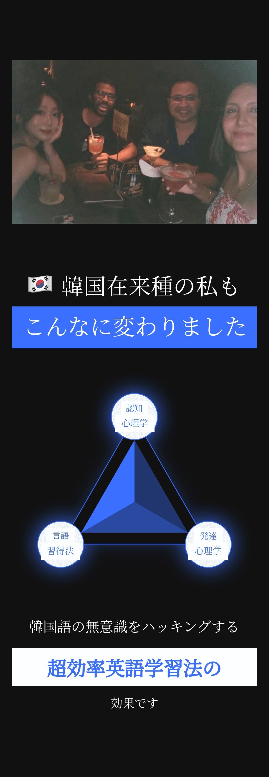 「無意識英語学習法」という革新的な方法を通じて、より多くの人々が英会話の壁を越えて自信を持ち、新しい世界を体験できるようにサポートしたいです。これが私がこのプロジェクトに情熱を注ぐ理由であり、ブレアプロジェクトの核心メッセージです。