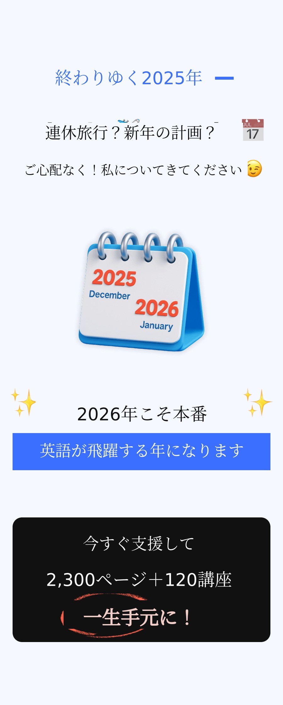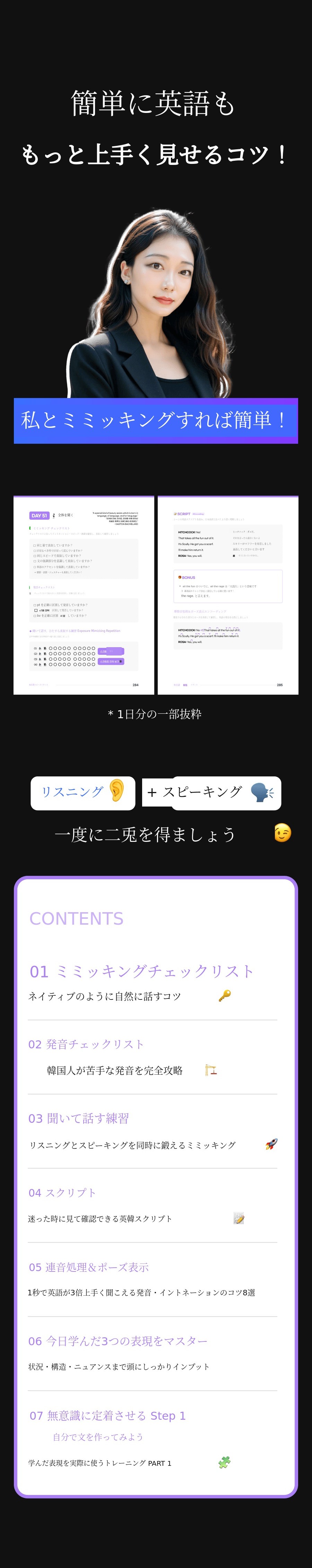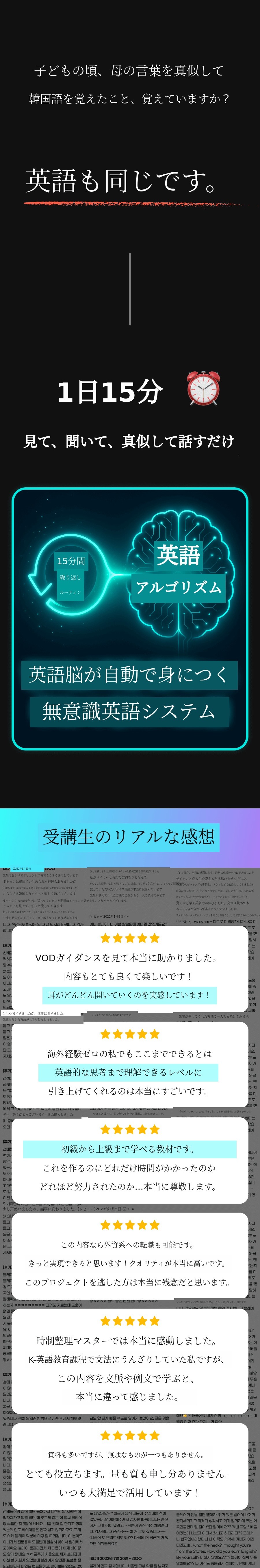 今、私はこの革新的な「無意識英語学習法」をもっと広い世界に紹介したいと思います。この本プロジェクトは単に教育コンテンツを販売するものではありません。私の情熱と受講生たちの成功ストーリーを通じて多くの人々に英語学習に対する新しい希望と可能性を提示するプロジェクトです。