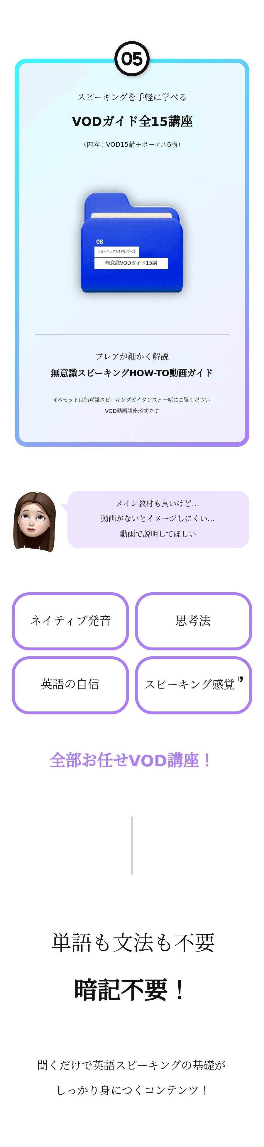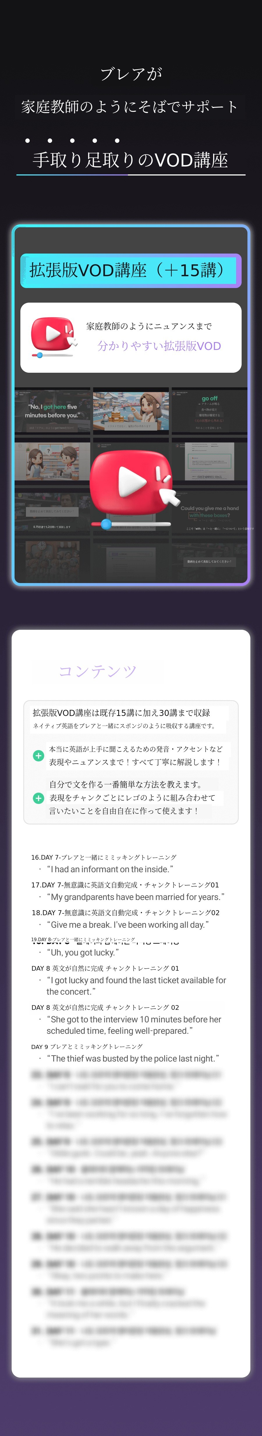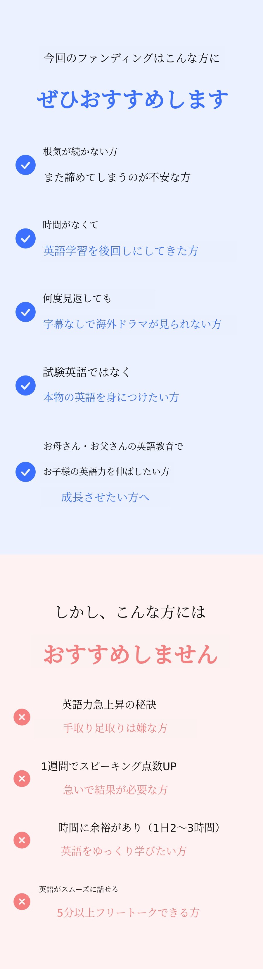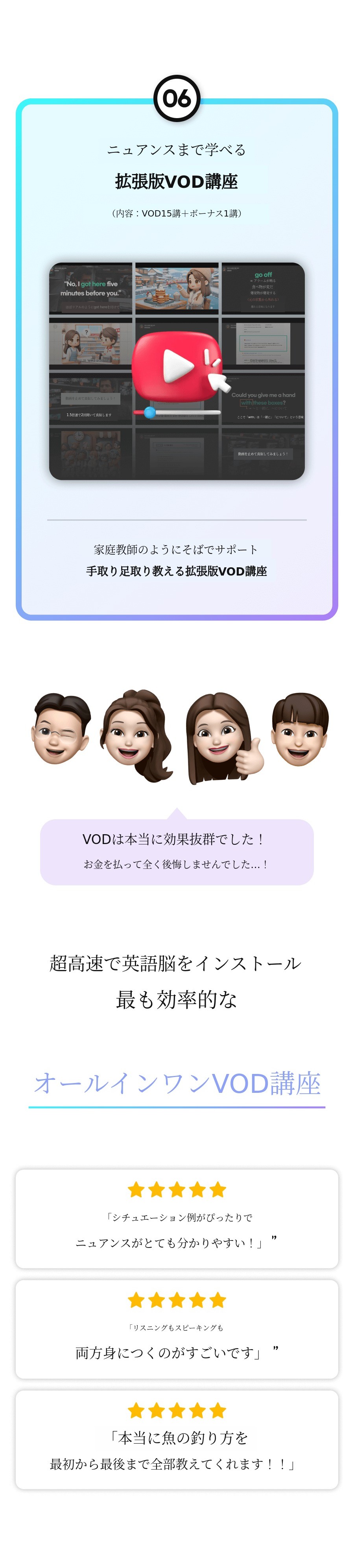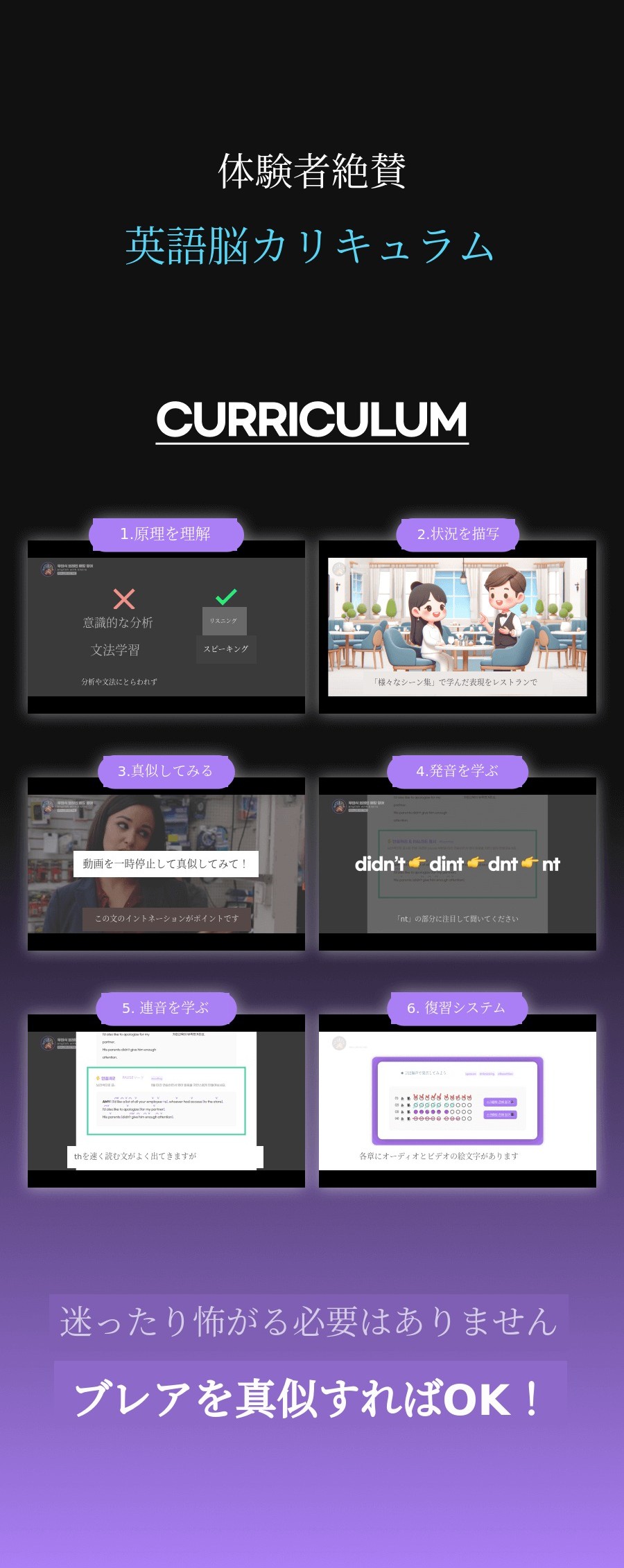 また、この学習法を体験するすべての学習者がより豊かな体験ができるように追加でさまざまな学習資料 を作成する予定です。学習者が英語に負担を感じずにさらに楽しく効果的に学べるようにサポートすることが目標です!