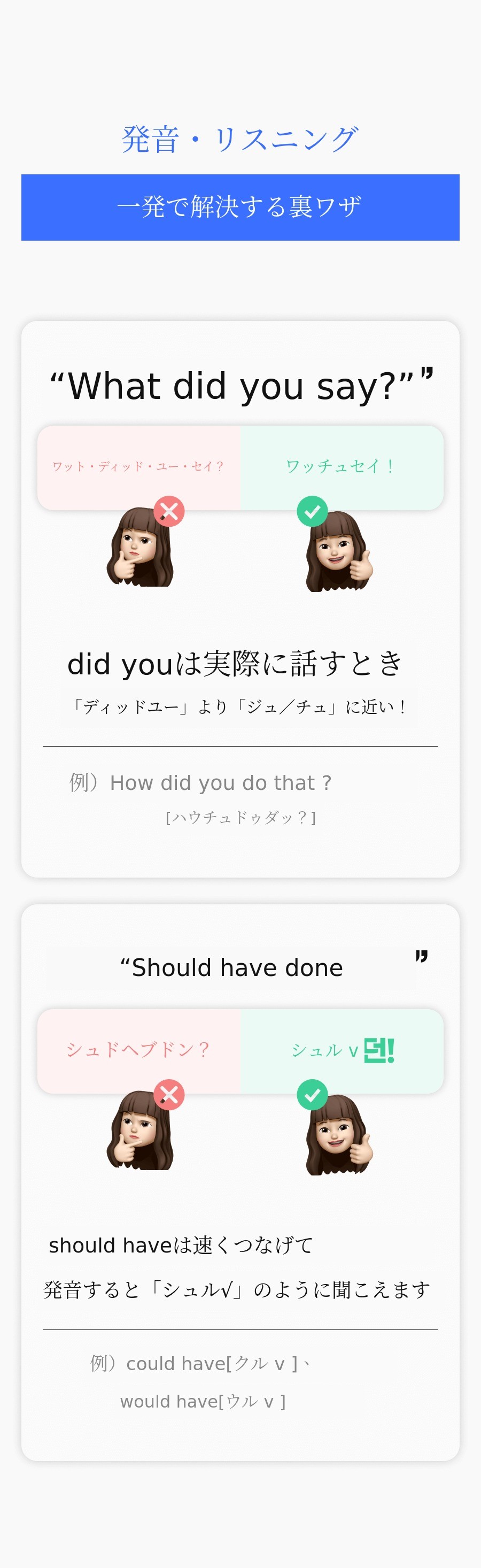 単語帳だけを覚えていると、単語を実際とは違う発音で覚えてしまう場合が本当にたくさんありました。とても