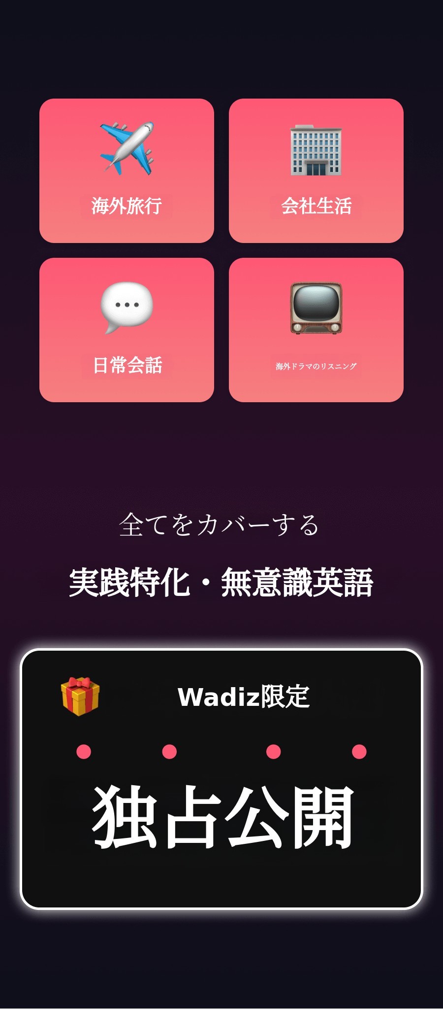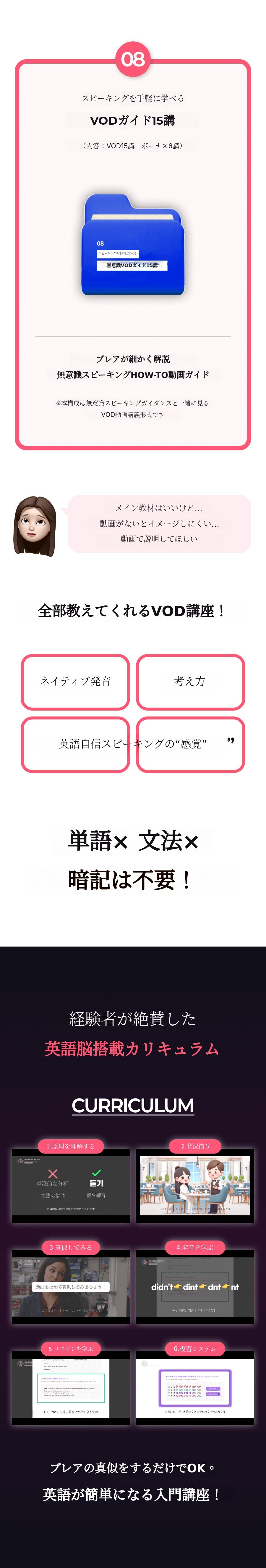 また、この学習法を体験するすべての学習者がより豊かな体験ができるように追加でさまざまな学習資料 を作成する予定です。学習者が英語に負担を感じずにさらに楽しく効果的に学べるようサポートすることが目標です!