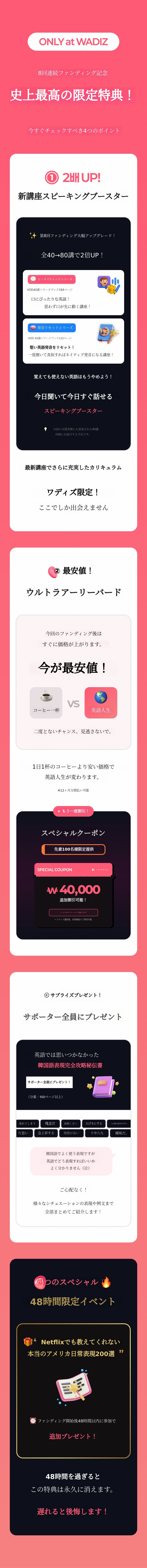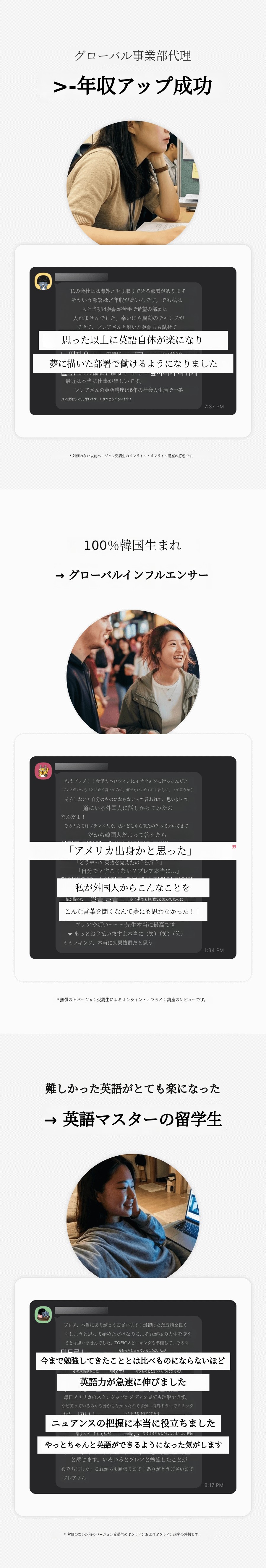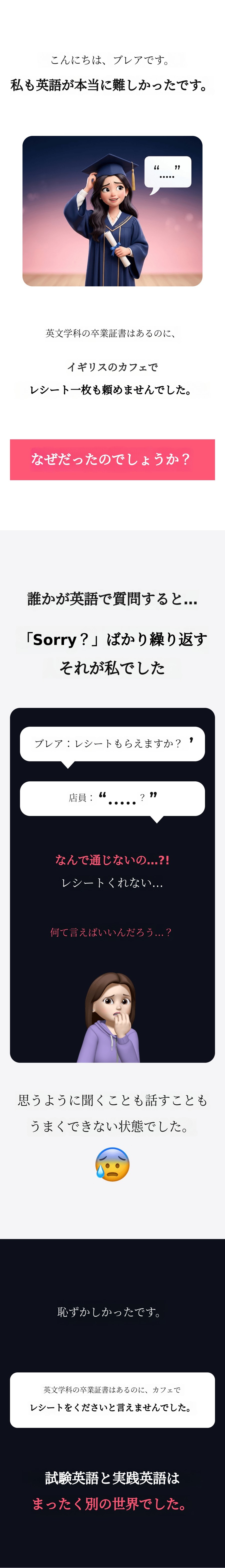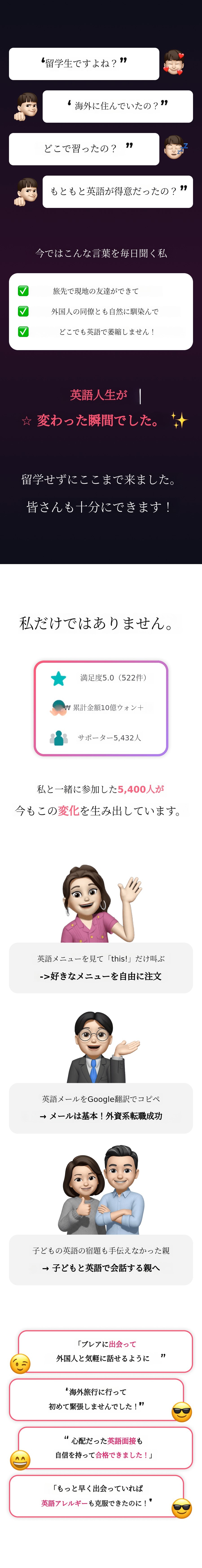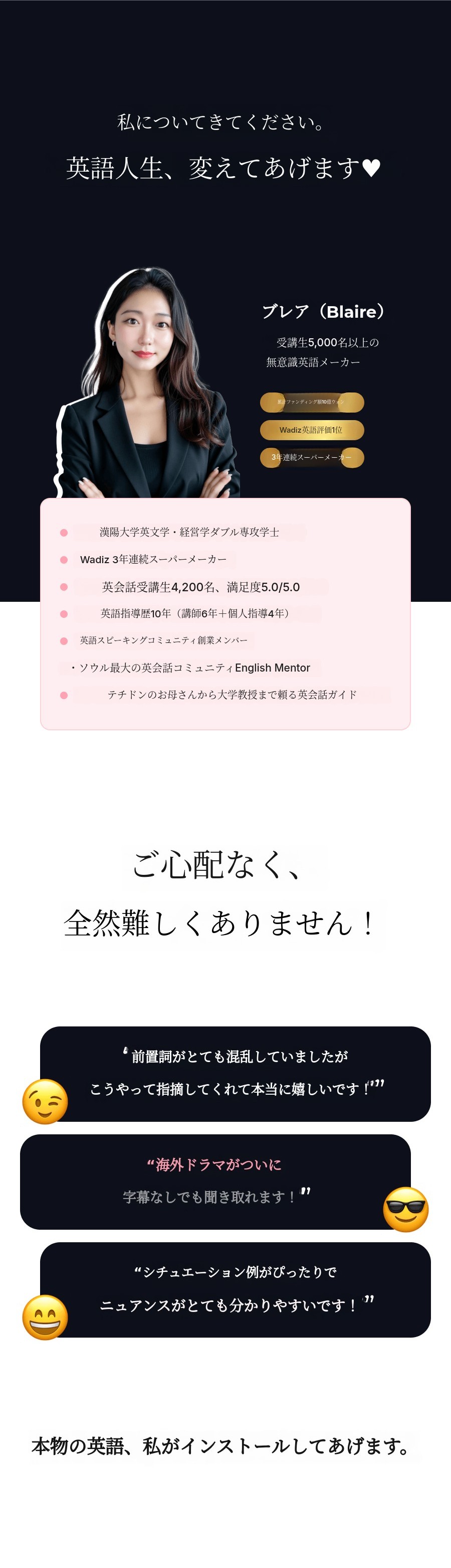 「無意識英語学習法」という革新的な方法を通じて、より多くの人々が英会話の壁を越えて自信を持ち、新しい世界を体験できるようにサポートしたいです。これが私がこのプロジェクトに情熱を注ぐ理由であり、ブレアプロジェクトの核心メッセージです。