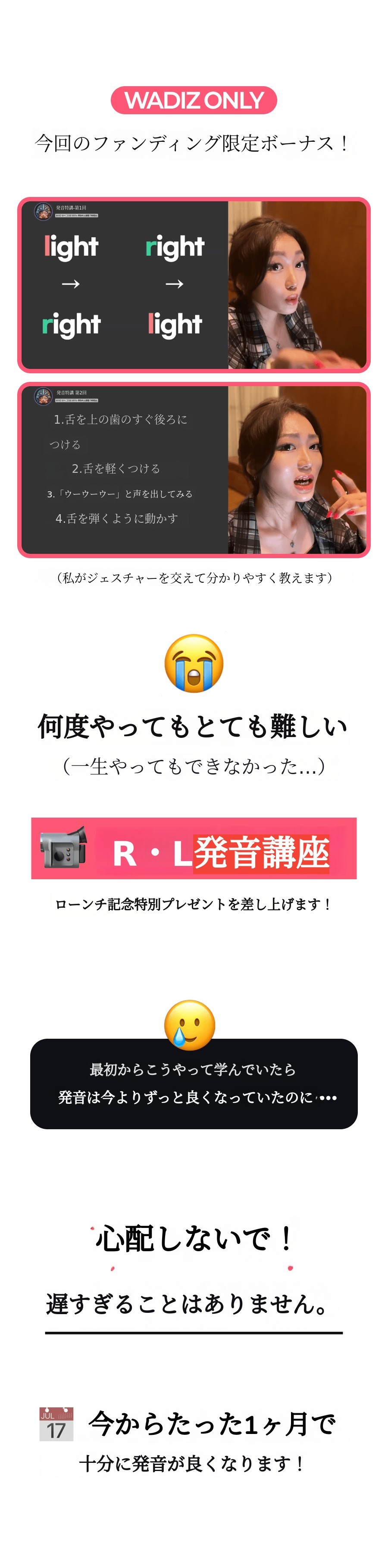 今回のクラウドファンディングで集まった資金は、現在の「無意識英語学習法」 をさらに多彩で豊富な資料にするために使用される予定です。最も重要な目標は、現在の「無意識英語学習法」をさらに効果的でアクセスしやすい形に発展させることです。そのためにコンテンツの新規開発および既存コンテンツの改善に集中的に使用する予定です。