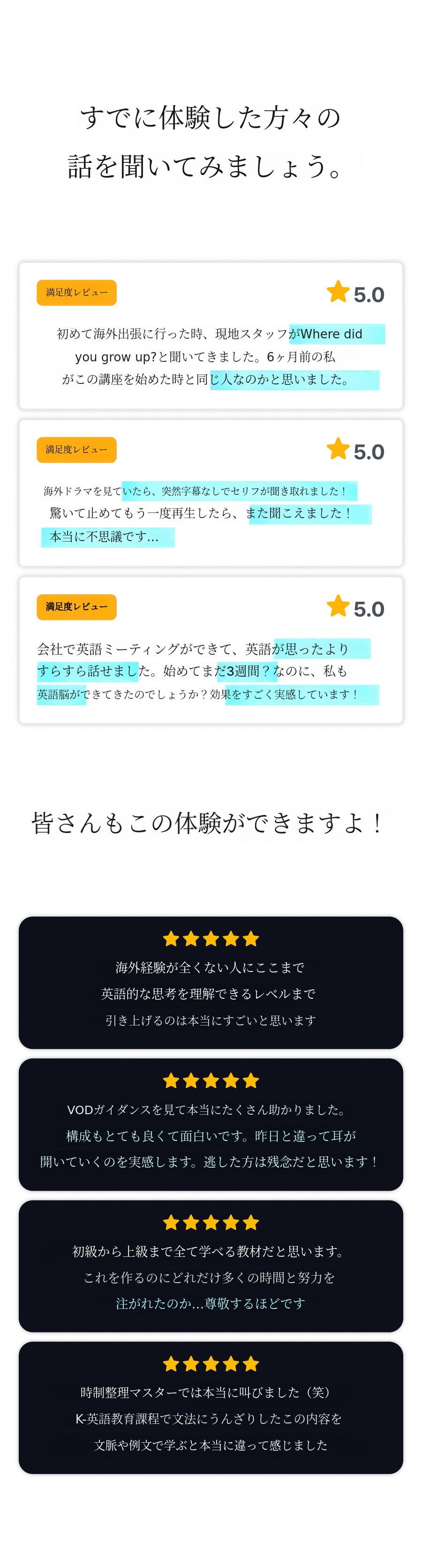 受講生たちは以前は想像もできなかった英会話力の向上を経験し、彼らの成功事例や感謝のメッセージは、この方法をもっと多くの人に伝えるべきだという確信を私に与えてくれました。