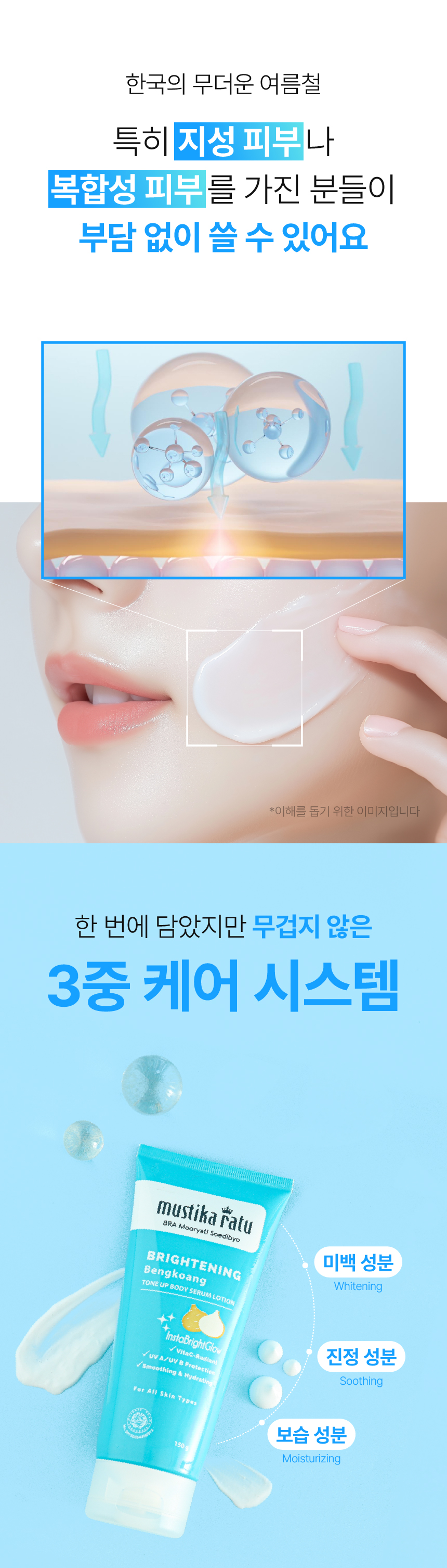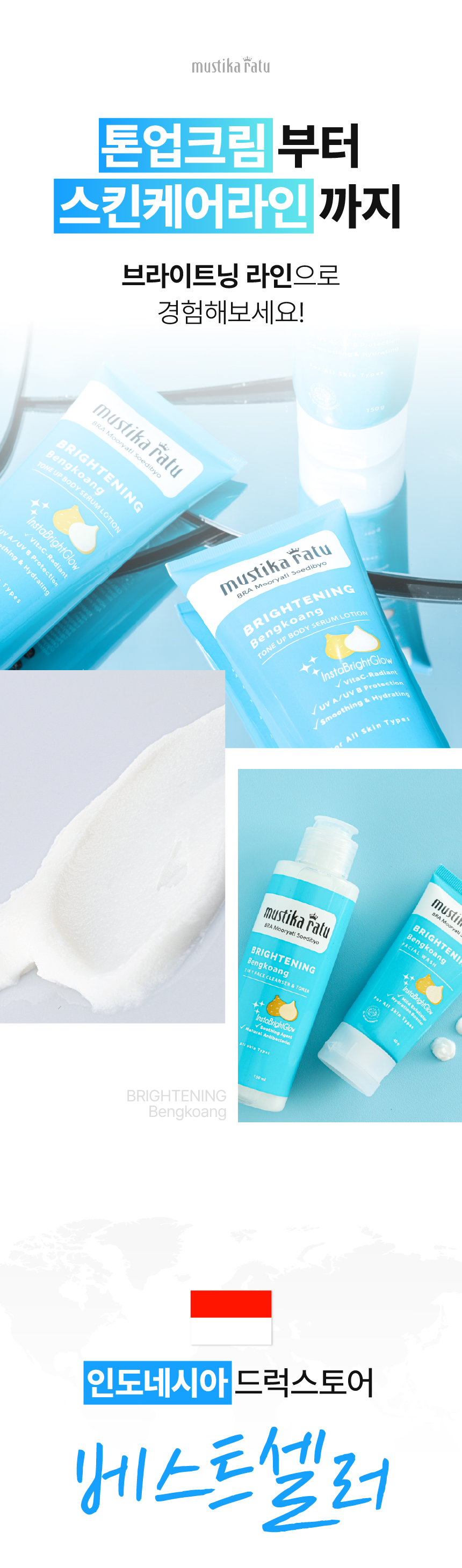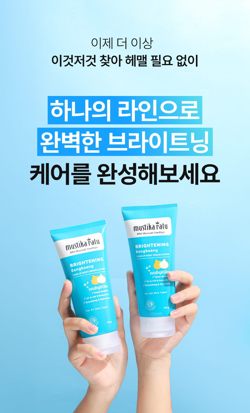 현지에서 가장 사랑받는 미백 케어 라인인 ‘Brightening Bengkoang 시리즈’는 피부에 순한 뱅코앙 추출물을 담아 맑고 투명한 피부 톤을 도와주는 자연주의 제품입니다.
