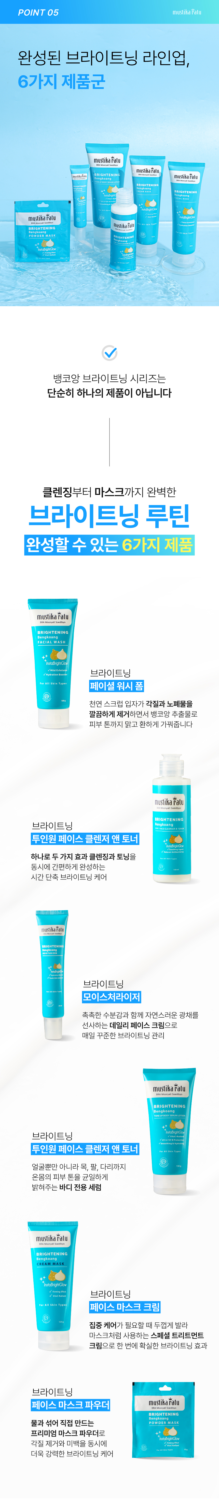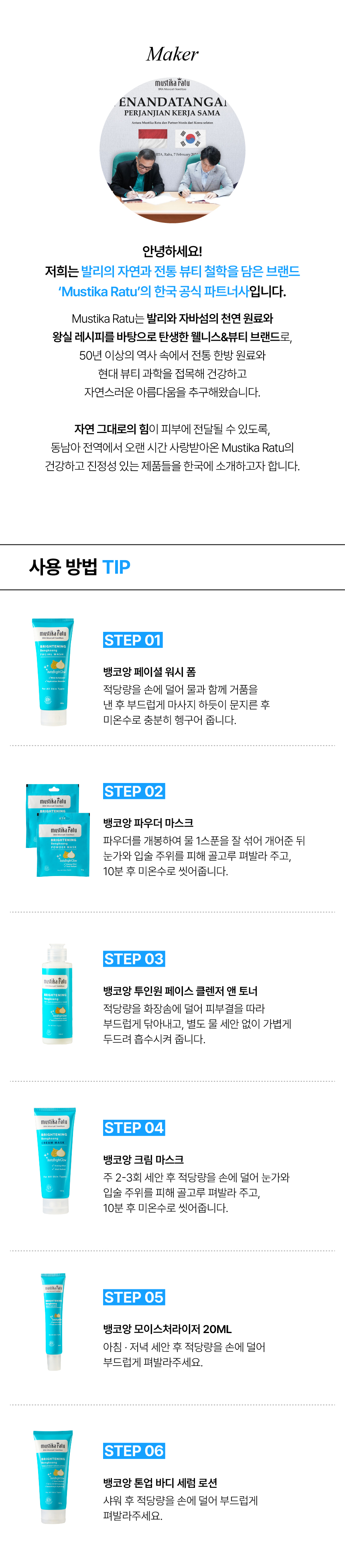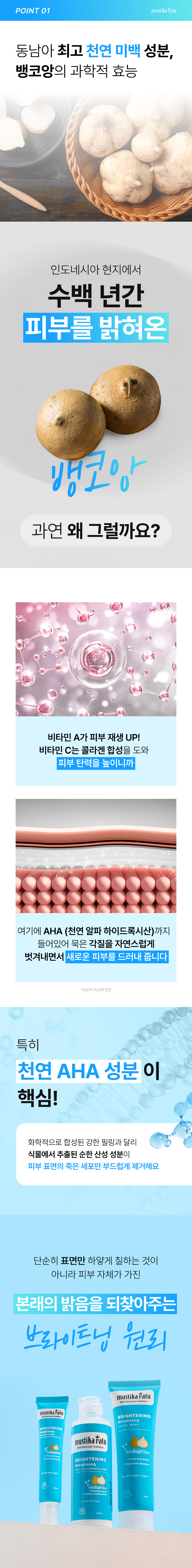 현지에서 가장 사랑받는 미백 케어 라인인 ‘Brightening Bengkoang 시리즈’는 피부에 순한 뱅코앙 추출물을 담아 맑고 투명한 피부 톤을 도와주는 자연주의 제품입니다.