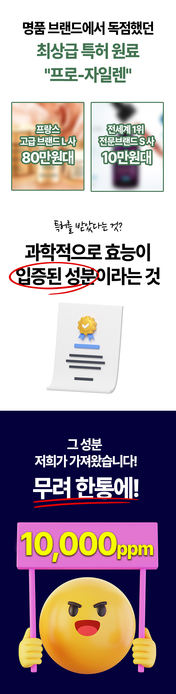 - 항노화 특허 성분 '프로자일렌'을 최대 10,000ppm 고농축으로 담았습니다.