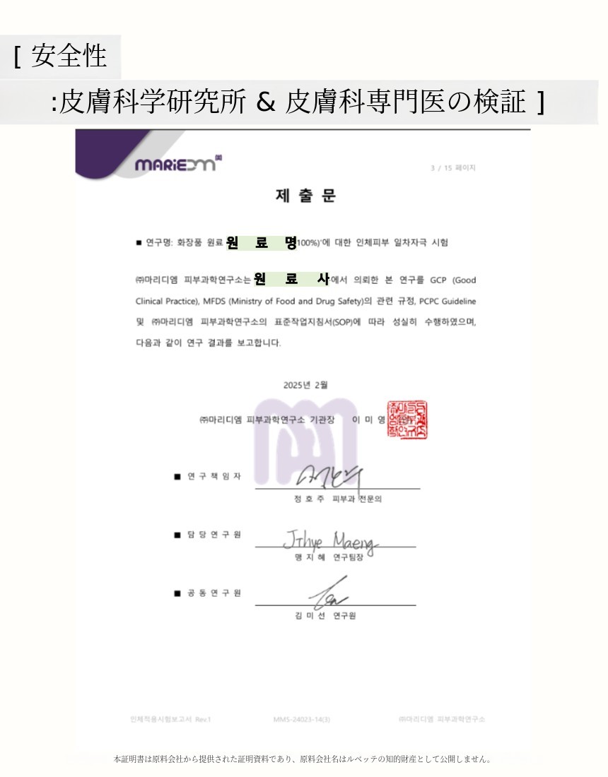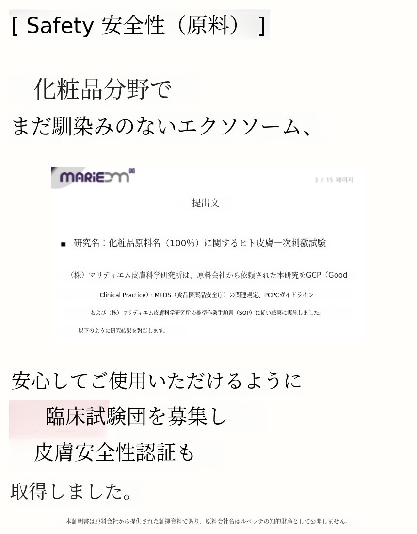 ->皮膚科専門医「エクソソーム原料」[安全性]認証。