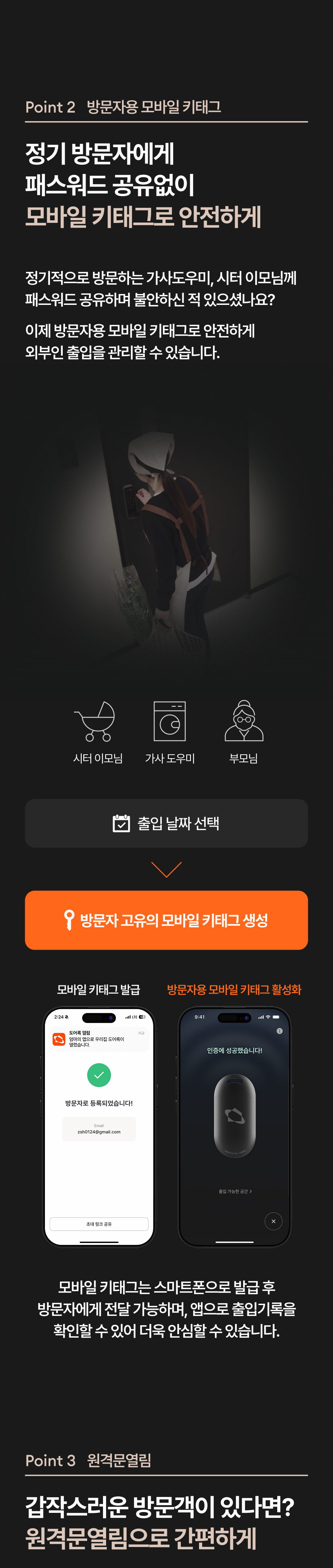 가족, 친구, 택배 기사 등 특정인에게 임시 키를 발급해 줄 수도 있습니다.
