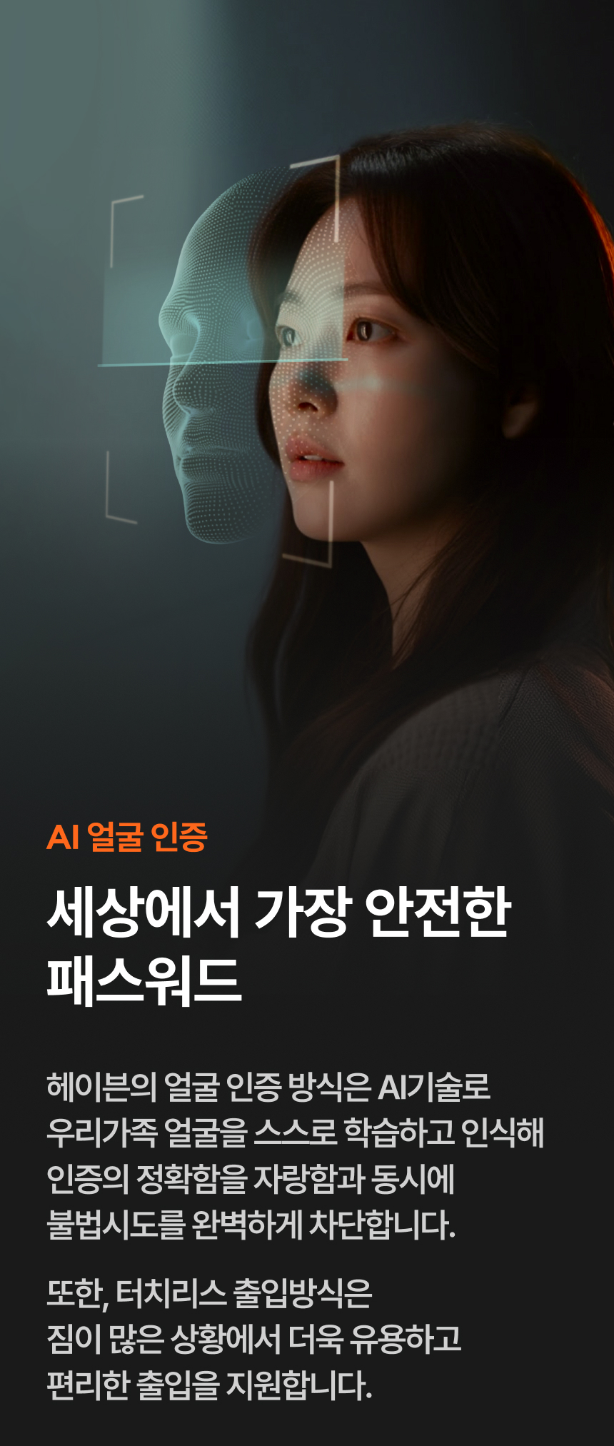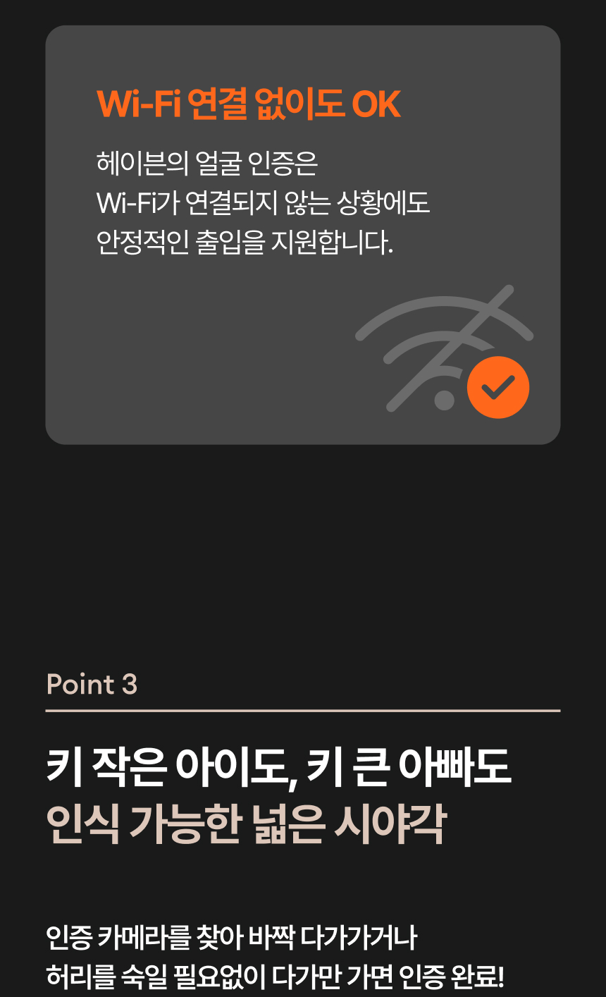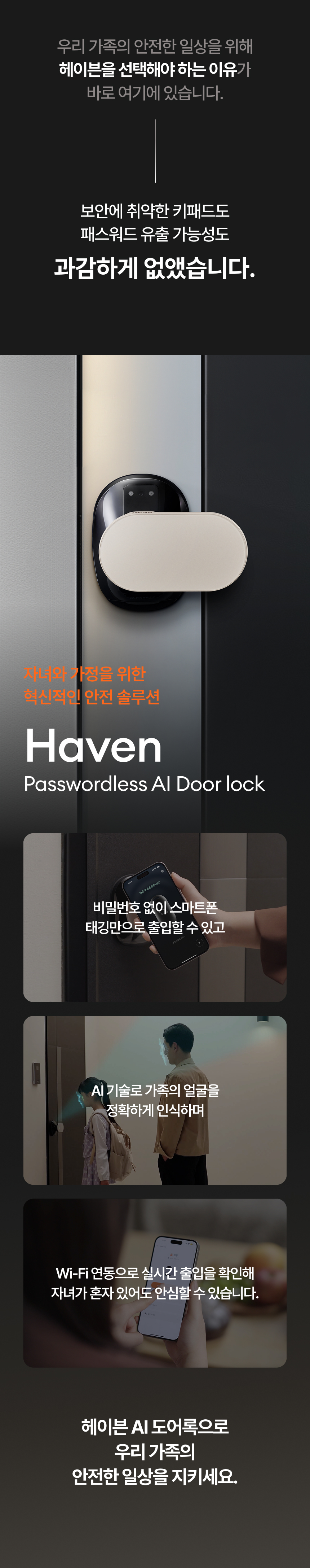 헤이븐은 단순히 문을 여는 도어락이 아닙니다. 얼굴을 인식해 문을 열고, 가족 구성원별로 스마트홈을 다르게 반응시키는, **당신을 알아보는 ‘집의 첫번째 인공지능’**입니다.