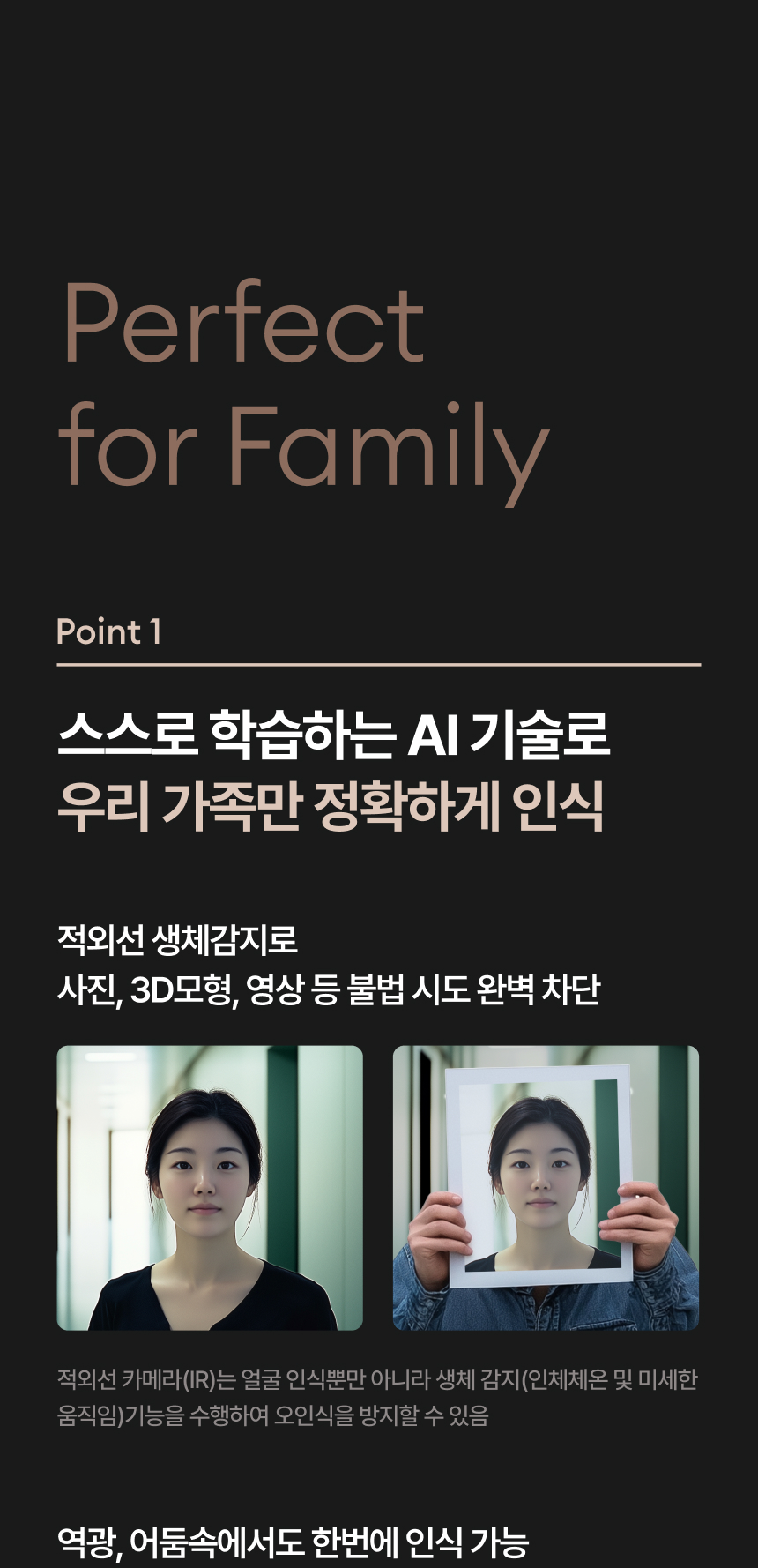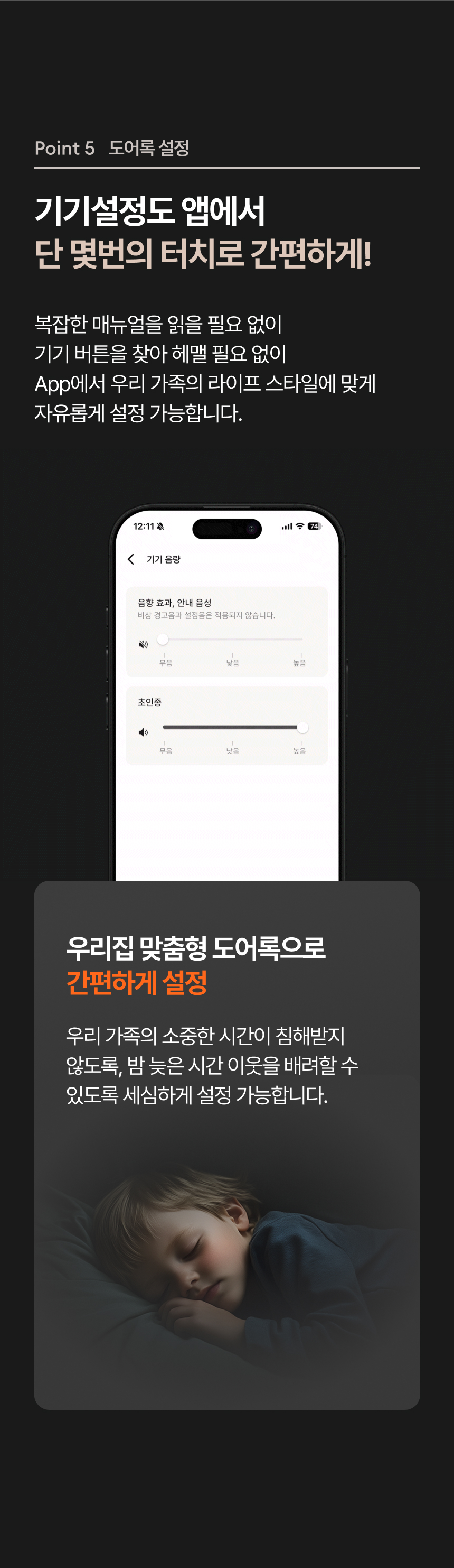 비밀번호도, 카드도 필요 없습니다. 현관 앞에 서면 사용자의 얼굴을 인식하고 자동으로 문이 열립니다. 출입 내역은 자동으로 기록되고, 가족마다 다르게 설정된 스마트홈 환경이 자동으로 실행되죠. 도어락이 단순한 보안 장비를 넘어서, 스마트홈의 시작점이 되는 셈입니다.