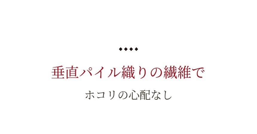 繊維がループ状ではなく垂直に配置されているため、ホコリの除去が容易で、ホコリが舞い上がりません。