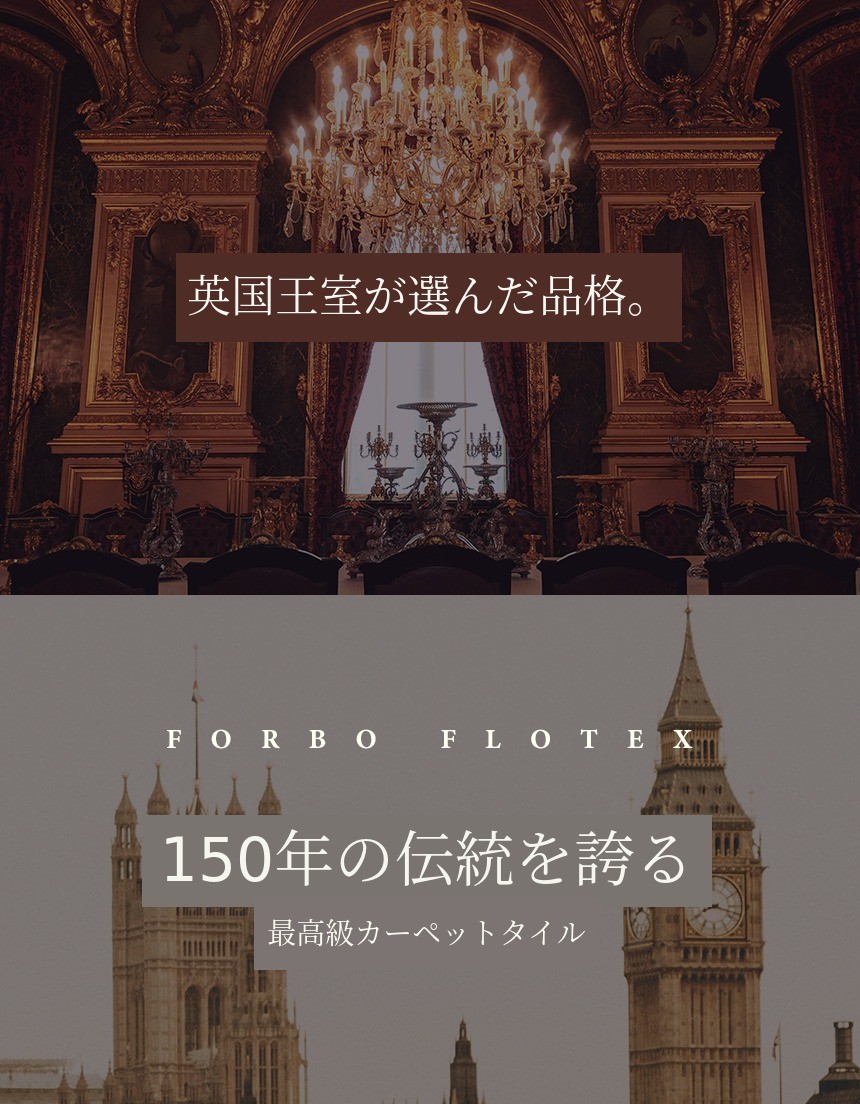 150年の伝統を誇る最高級カーペットタイル。王室認証の品質と洗練されたデザインで、どんな空間にも高級感をプラスします。