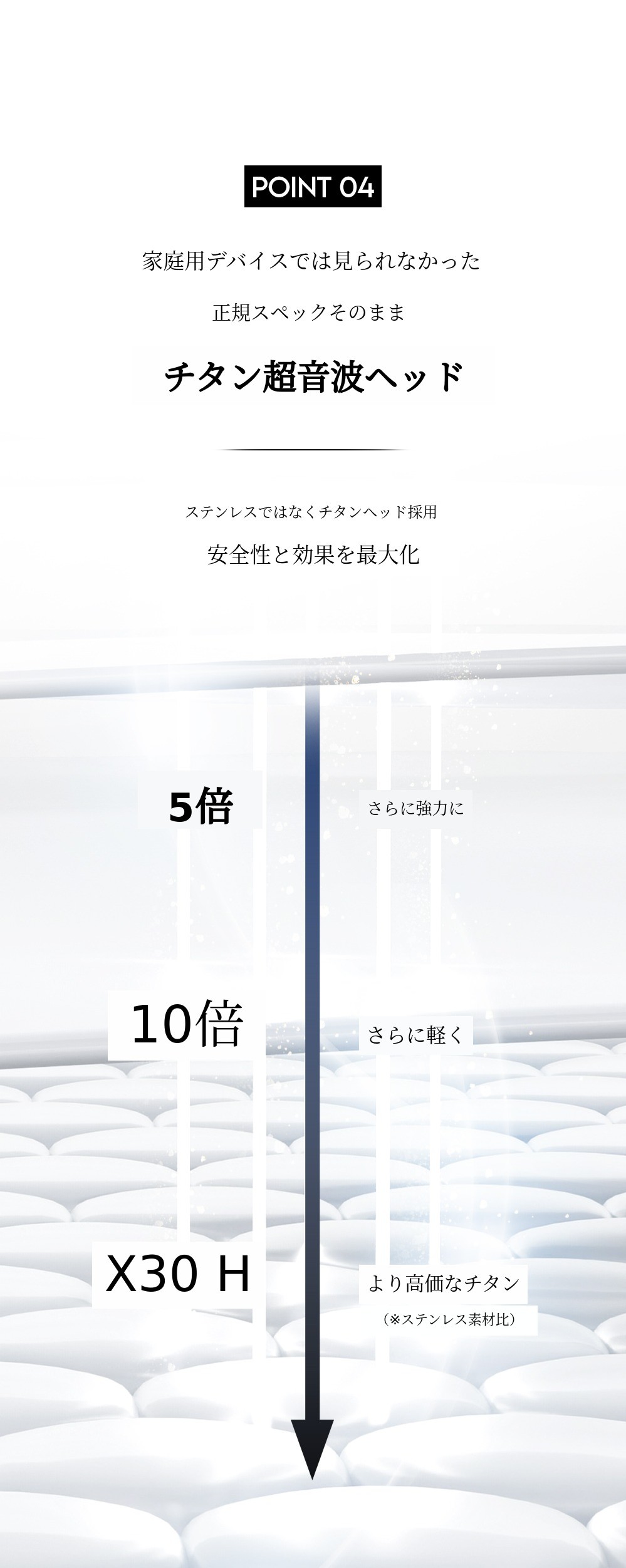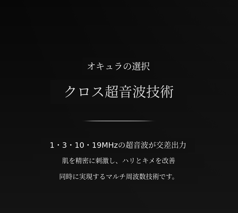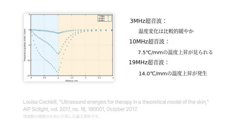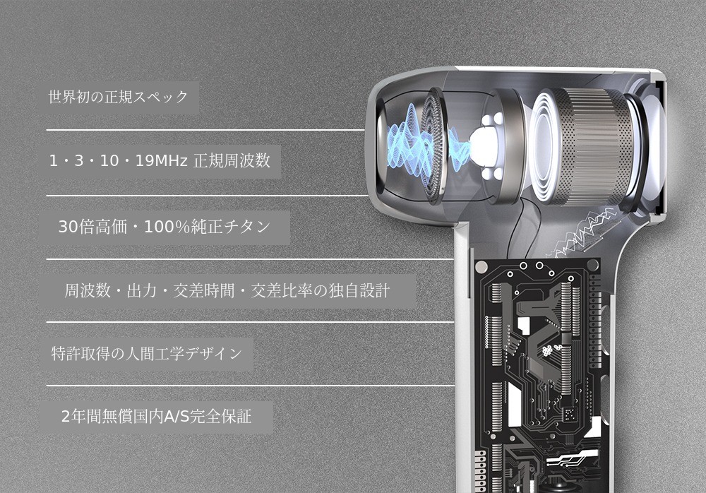 1MHz・3MHzの低周波浸透力と10MHzの高周波浸透、弾力効果をバランスよく組み合わせて、