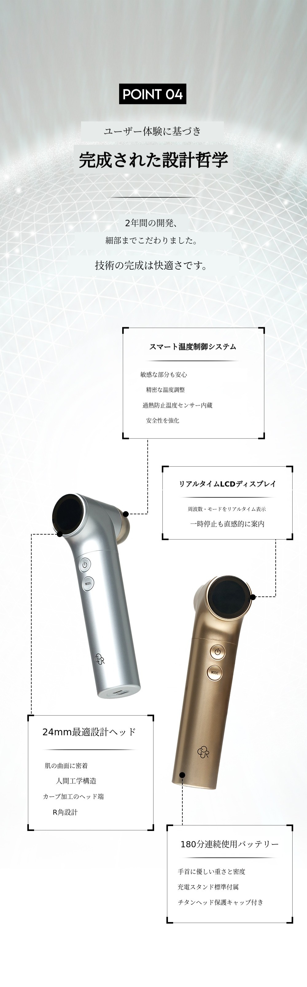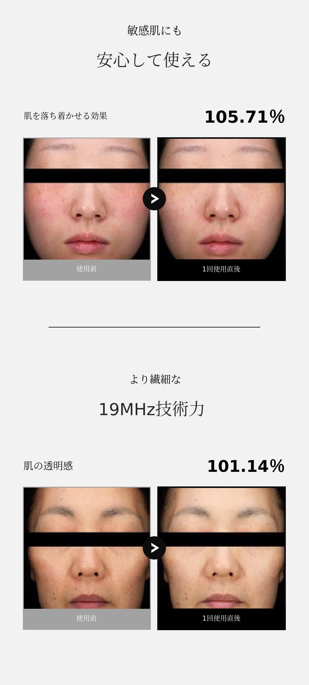 肌のハリに重要な10/19MHzを中心に設計しながらも