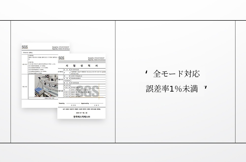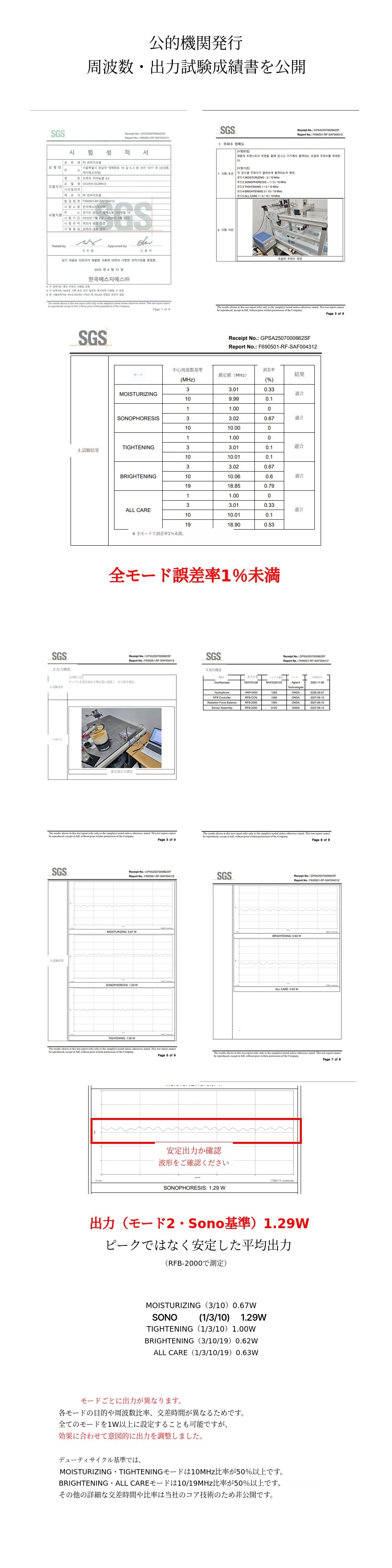 自社テストではなく、韓国SGSで周波数試験成績書を取得しました。