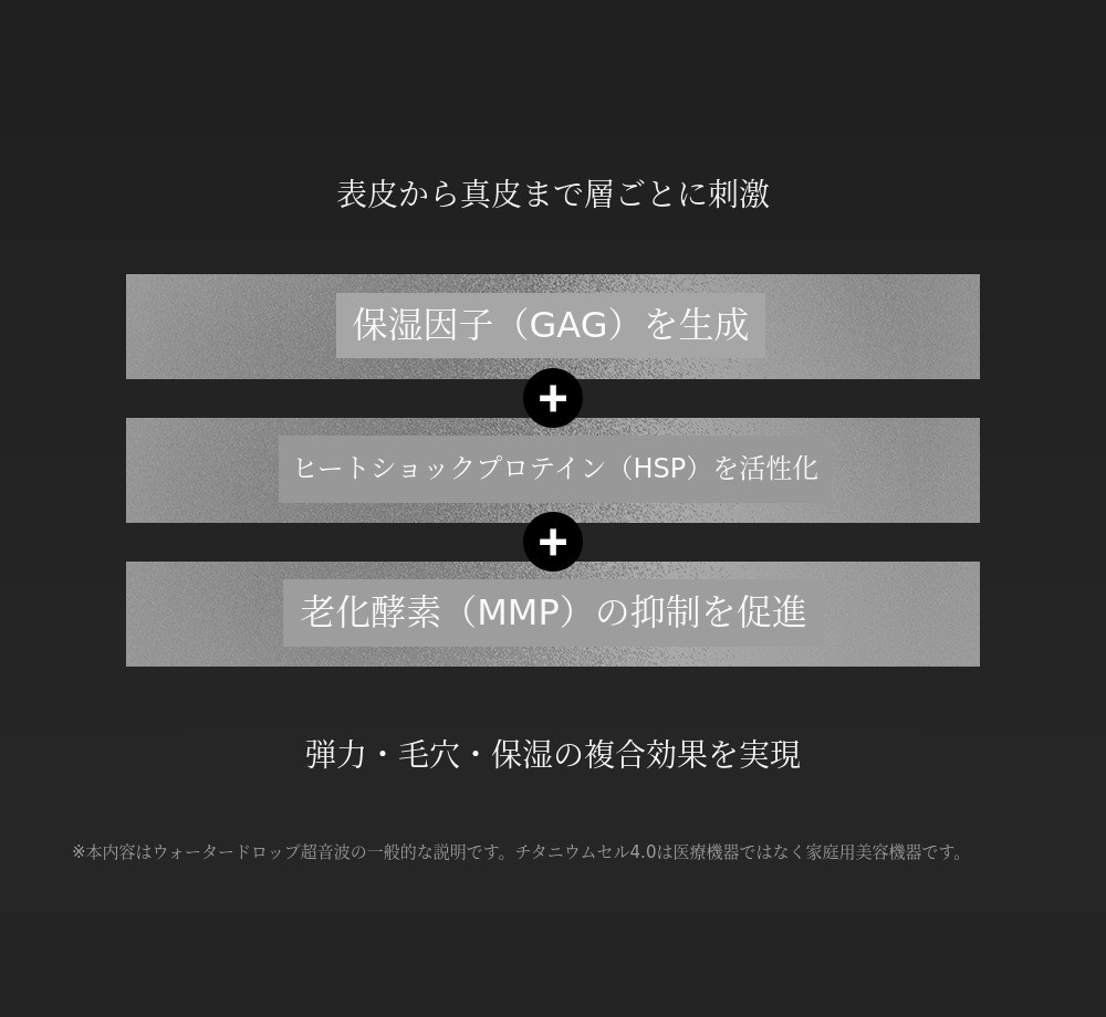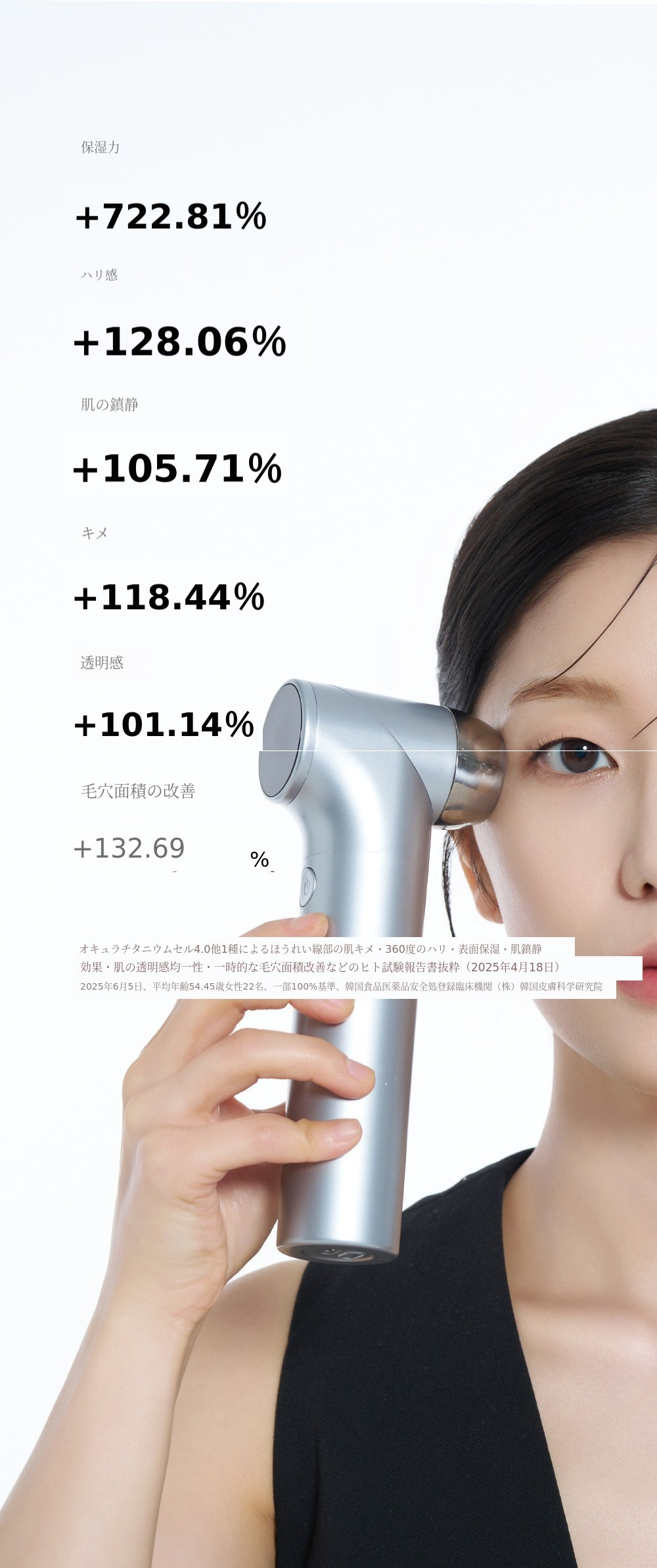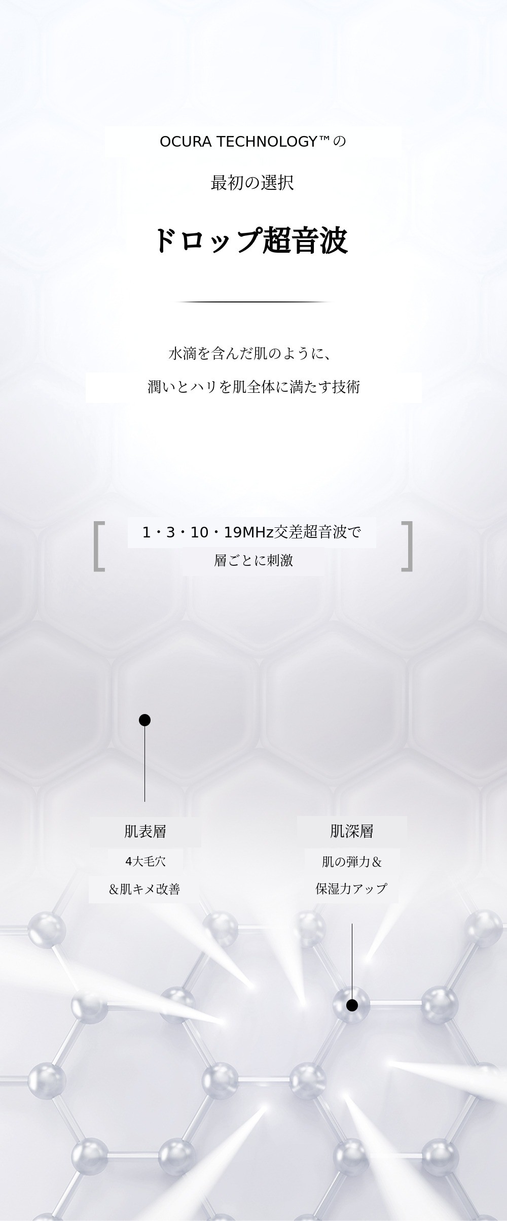 毛穴、ハリ、インナードライ、肌理、有効成分の浸透など、ウォータードロップ超音波の主要な効果はそのまま維持しながら、