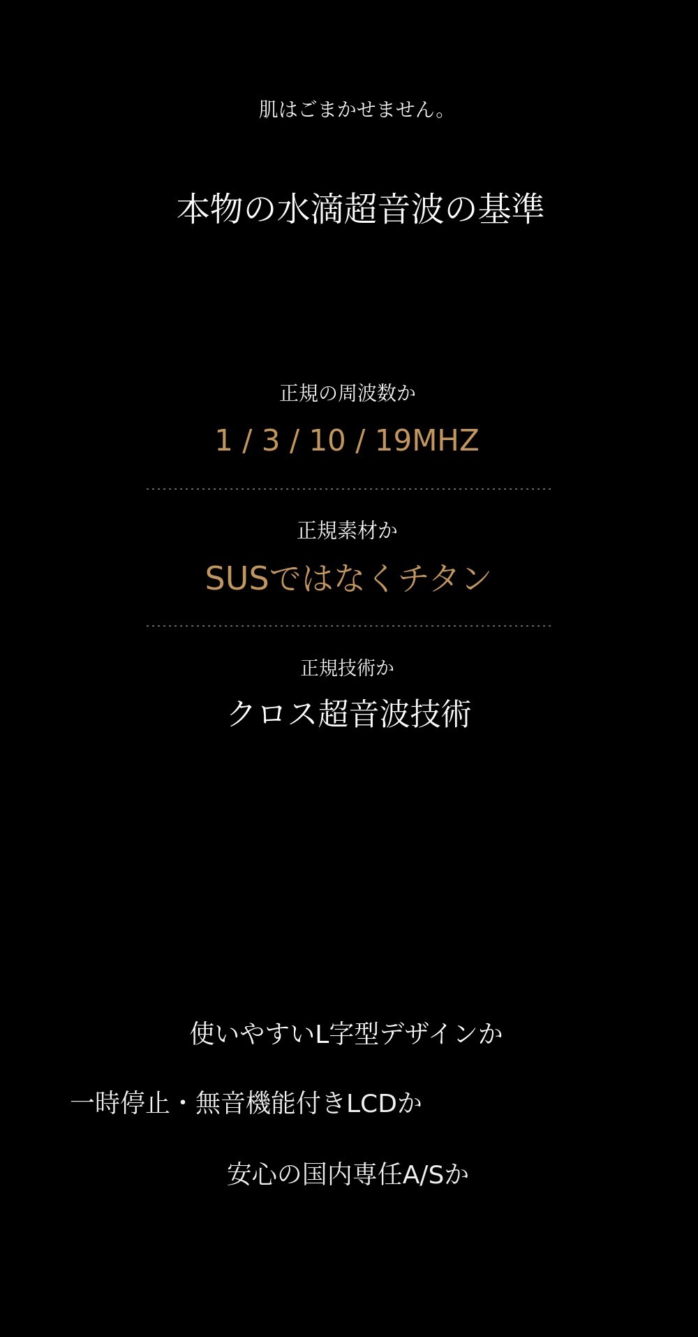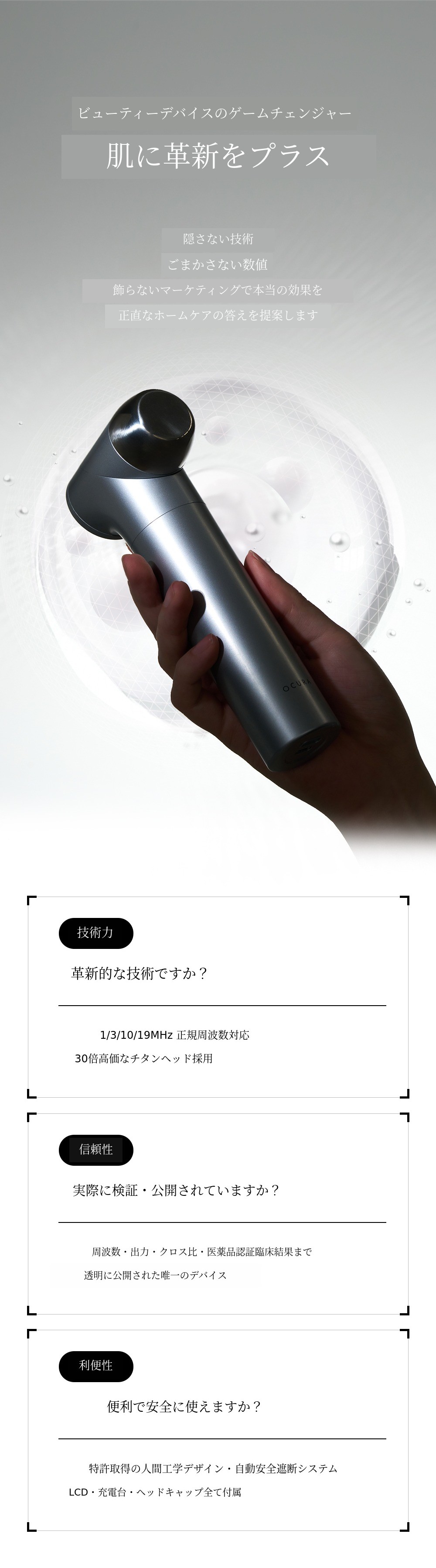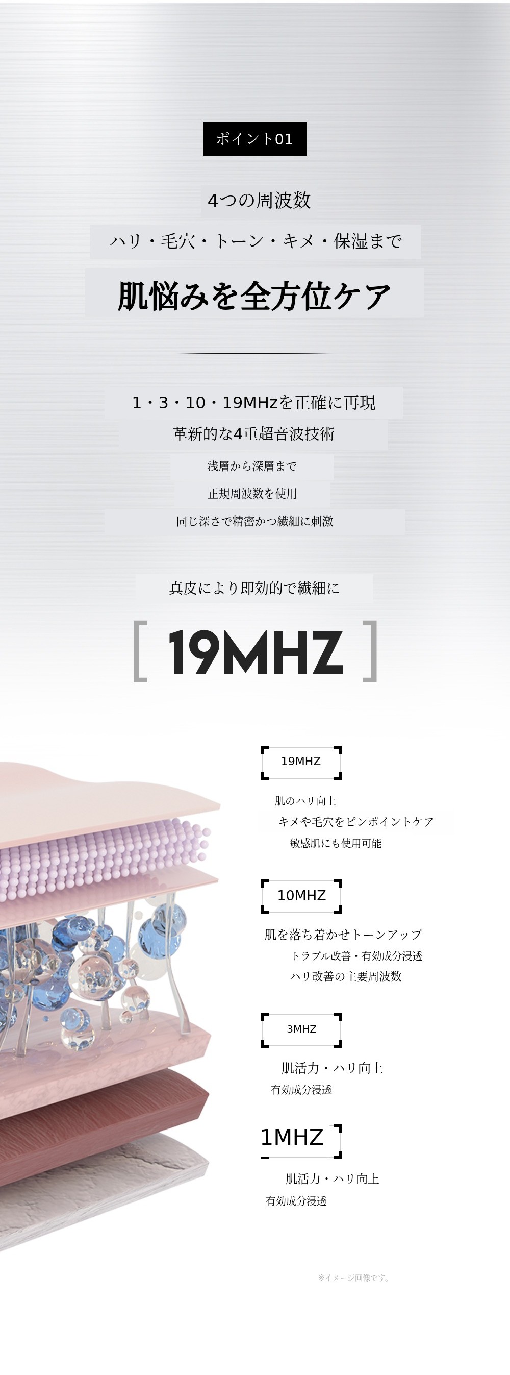 1/3/10/19MHzの超音波をすべて活用し、深い弾力刺激から肌理の整えまで、