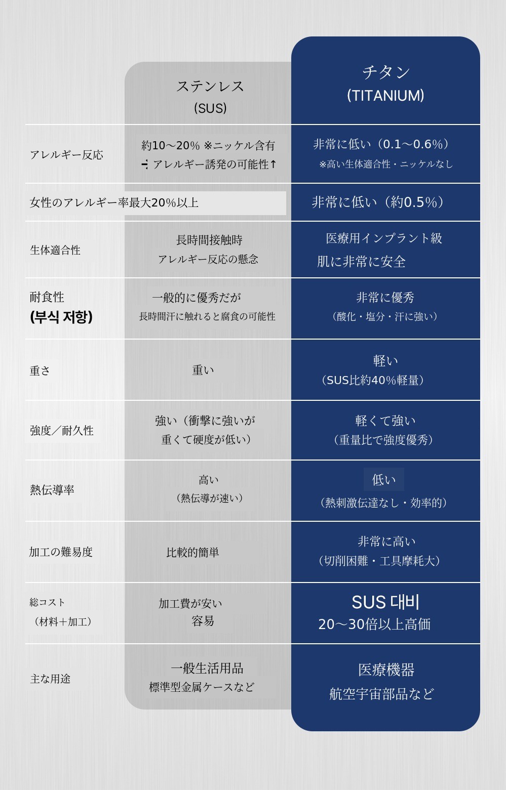 ドイツのオリジナル機器に使用される高純度チタン素材をそのまま適用し、