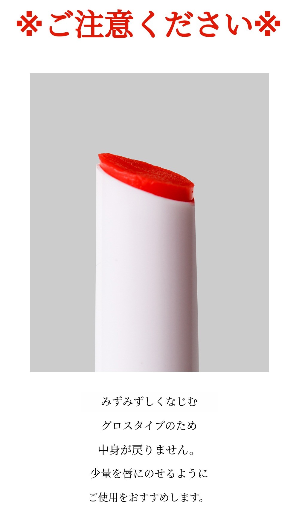 リップスティック本来の色を損なわず、グロッシーさと華やかさを同時に与えます。リップラインがよりはっきり見えて、唇の立体感が際立ちます。