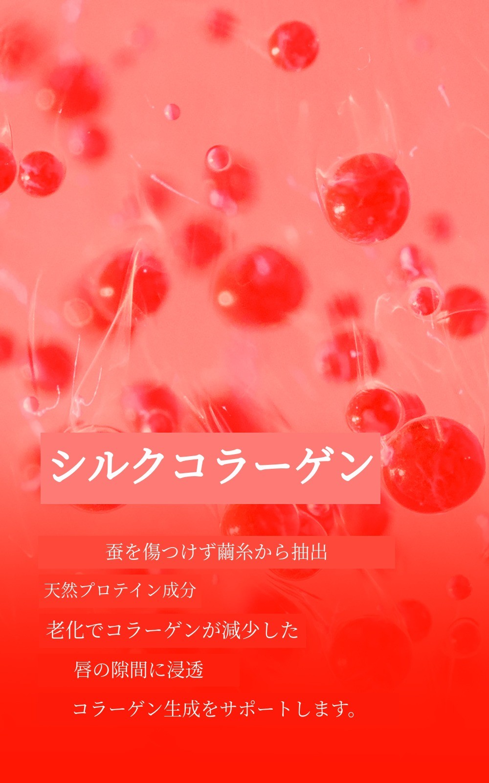 リップバームを塗った瞬間、唇のコラーゲンがたっぷり満たされます。