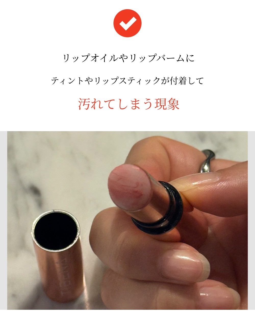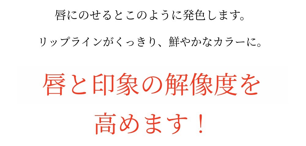 一般的なリップバームで感じたベタつき、ダマ、ヨーグルト現象などを徹底的に排除し、純粋な発色だけを残します。