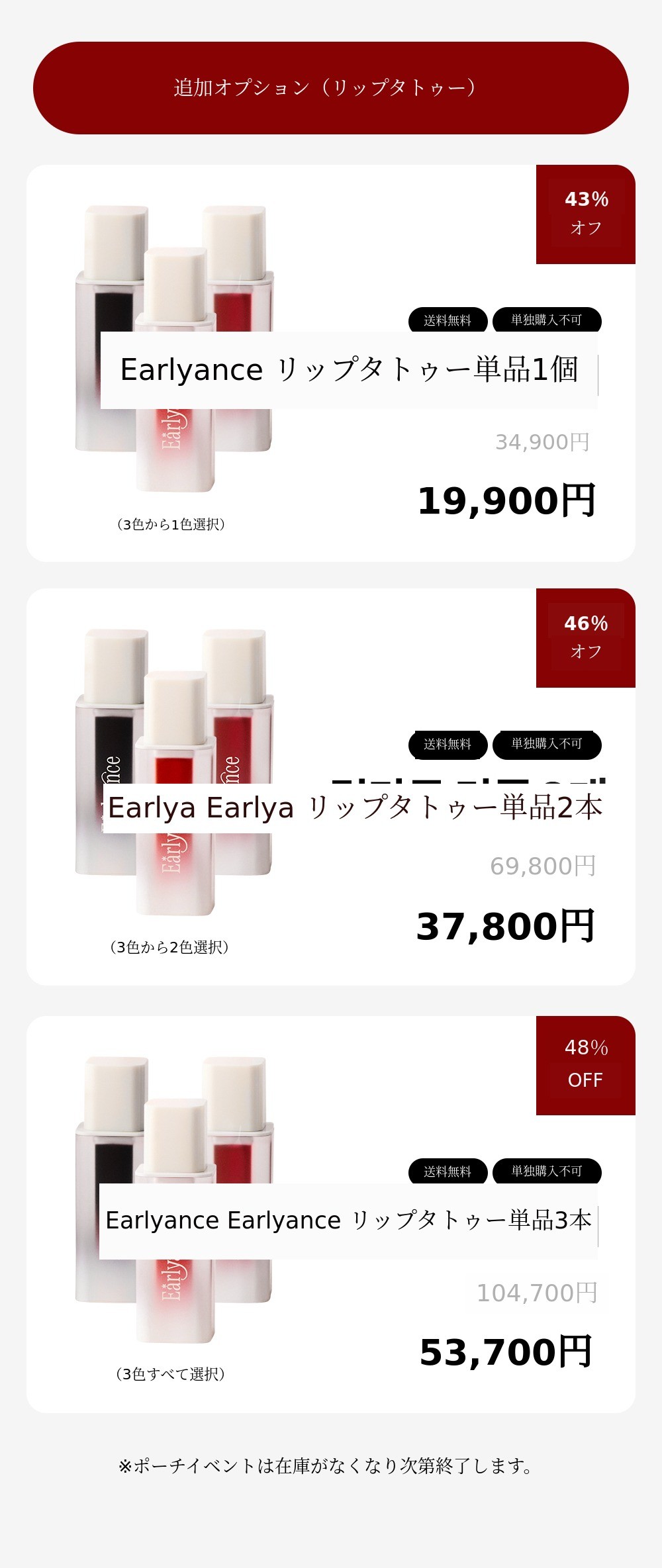 このように開発された待望のリップタトゥーぴったりリップバームをこの秋にローンチすることになりました!天気も乾燥して肌寒くなってきたのでリップタトゥーの上にリップフィットバームは必須アイテムではないでしょうか!今回発売されるリップフィットバーム3種すべて 既存のリップタトゥーと似合うカラーで ベタつきません。そしてサポーターの皆様のご意見を反映して しっとりとしたツヤ感、 高保湿栄養 まで一つも逃さず、ぜひ一度信じてお使いいただければ幸いです!