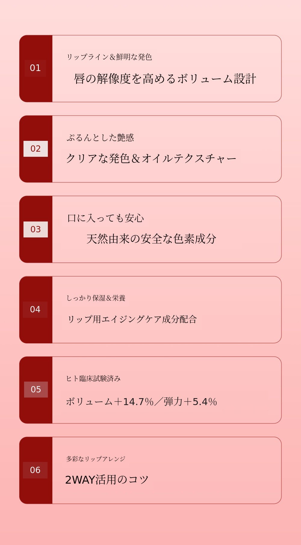 サポーター様の唇の解像度を高めるソリューションとして、どの製品にもない革新的な機能だけをぎゅっと詰め込みました。