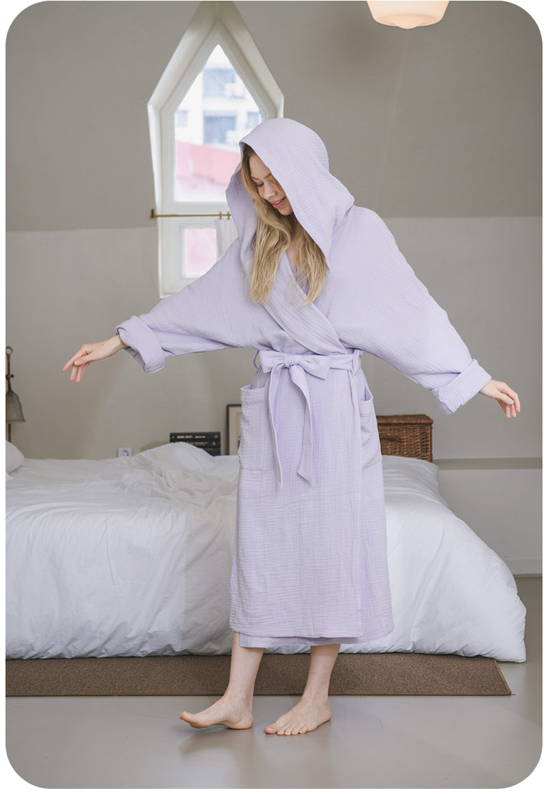 今回のプロジェクトでは、多くの称賛を受けたふわふわ雲ガウンを愛してくださる方々から再度リクエストをいただき、再び準備することになりました。 シャワーの後、もっと快適で美しい時間をゆったりとお楽しみください。
