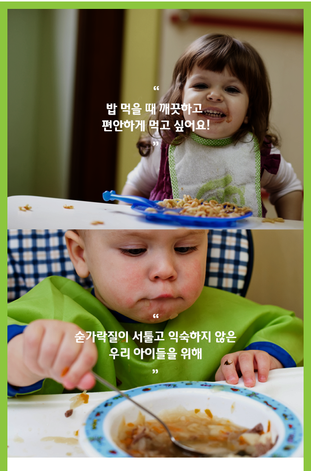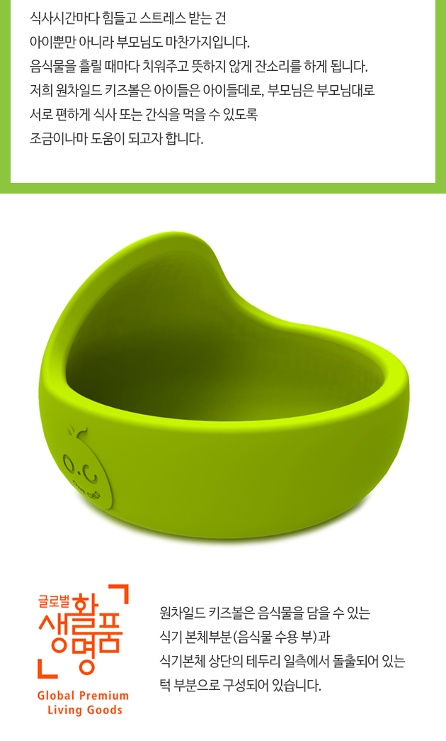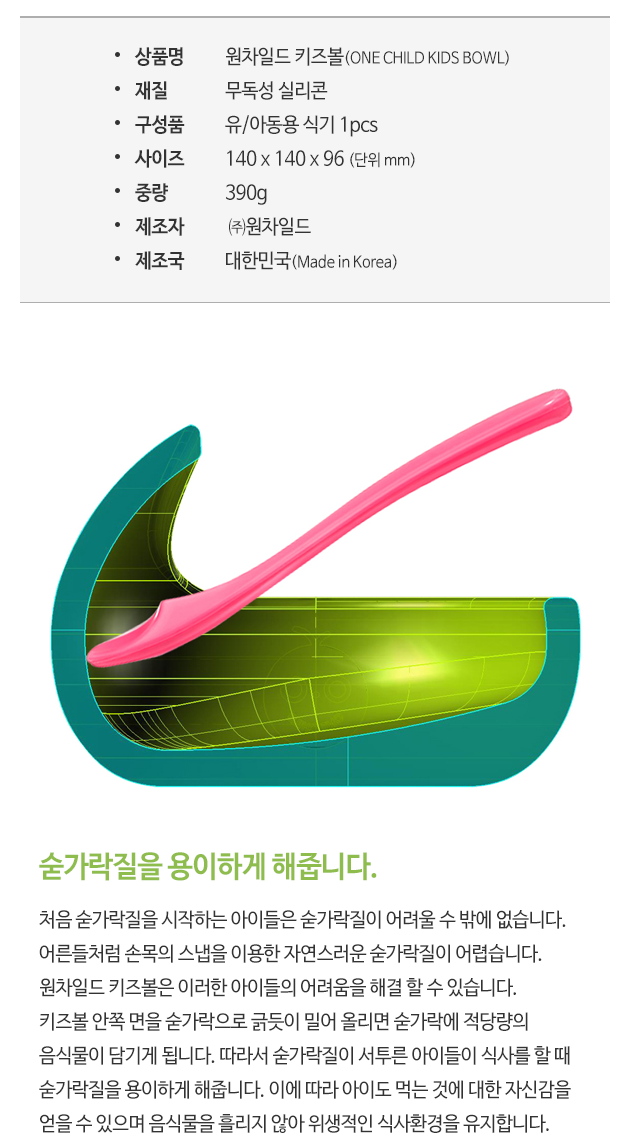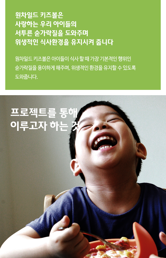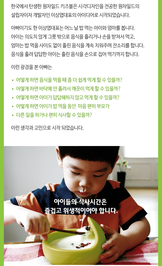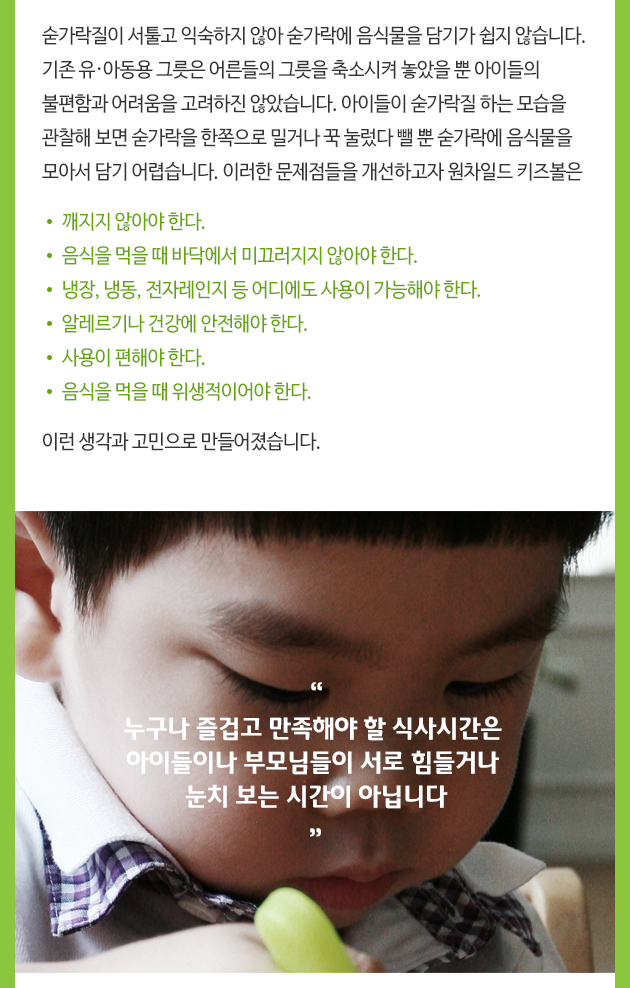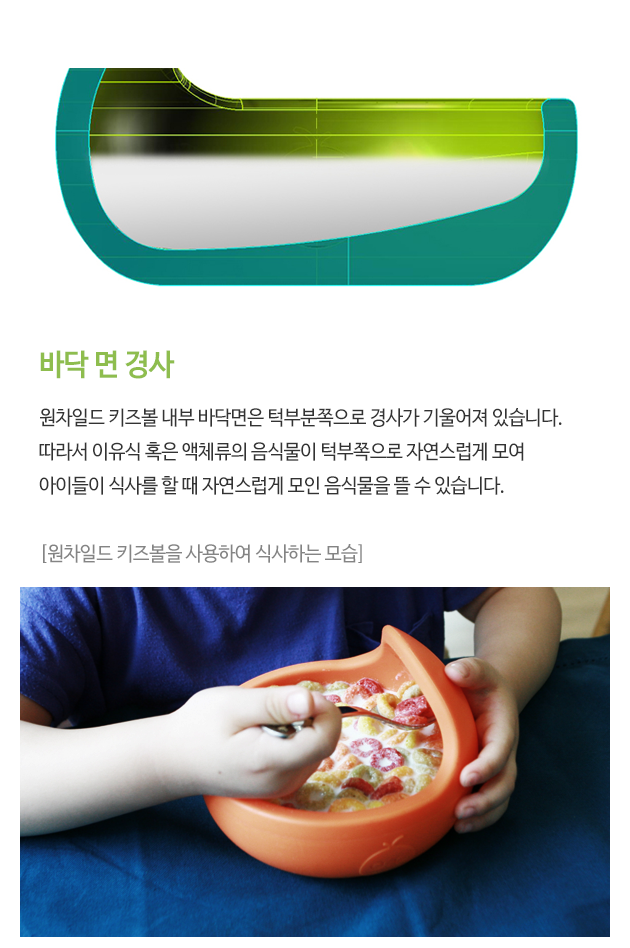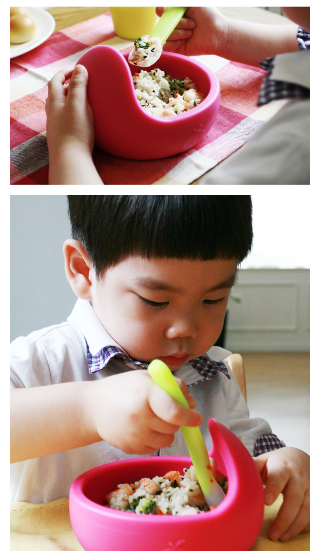 「ごはんをきれいに、快適に食べたい!」子どもたちの願いを叶えるため、スプーン使いがまだ不慣れな可愛い子どもたちのためにワンチャイルド キッズボウルを作りました。