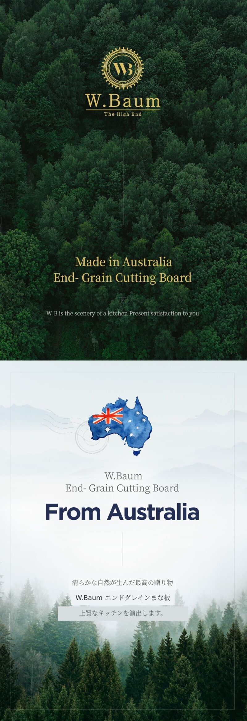 こんにちは、W.Baumです。幼い頃から家具工場を経営していた父の背中を見て育ち、子供の頃からおもちゃのように木に触れてきました。留学生活中、オーストラリア人のWalkerと一緒に無垢材製品を製作し、ハイエンド製品を合理的な価格でプレオーダーしたいと思いW.B.を作りました。料理の背景はまな板だと考え、皆様に最高の背景をプレゼントしたいと思います。