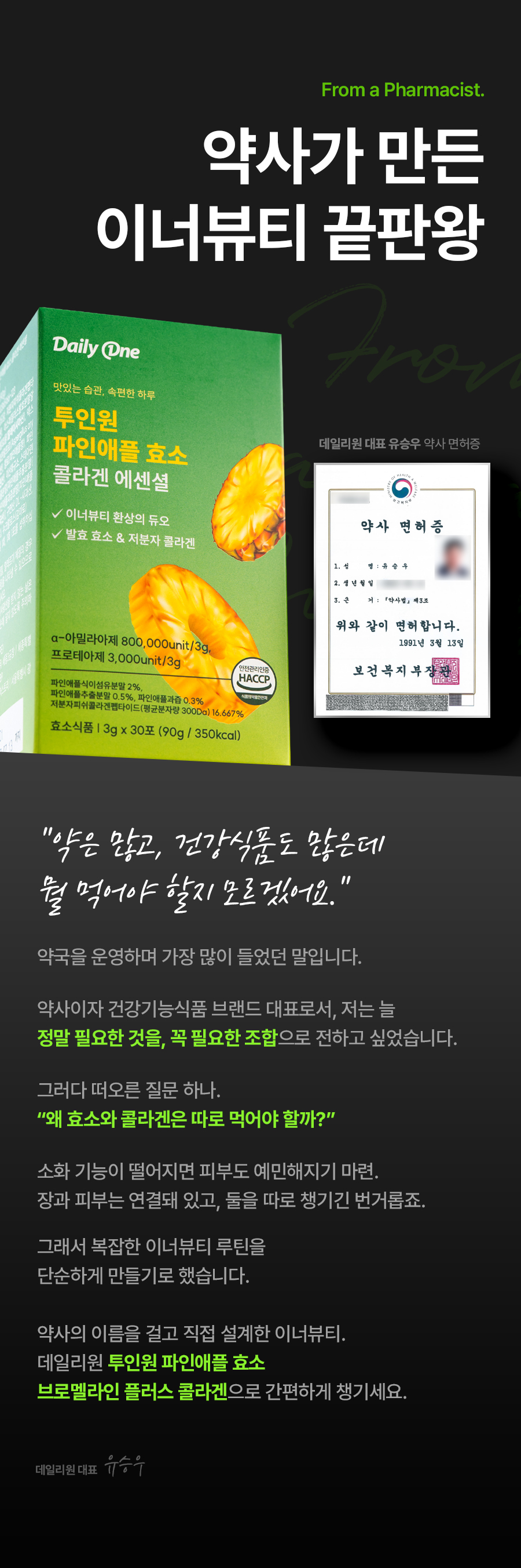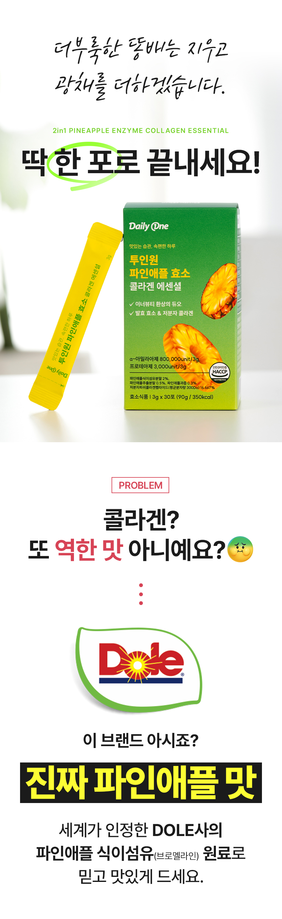 パイナップル酵素と低分子コラーゲンが組み合わさり、健康と肌を同時にケアします。面倒な別々の摂取は不要。美味しく手軽に毎日摂取し、内側から輝く肌を体感してください!