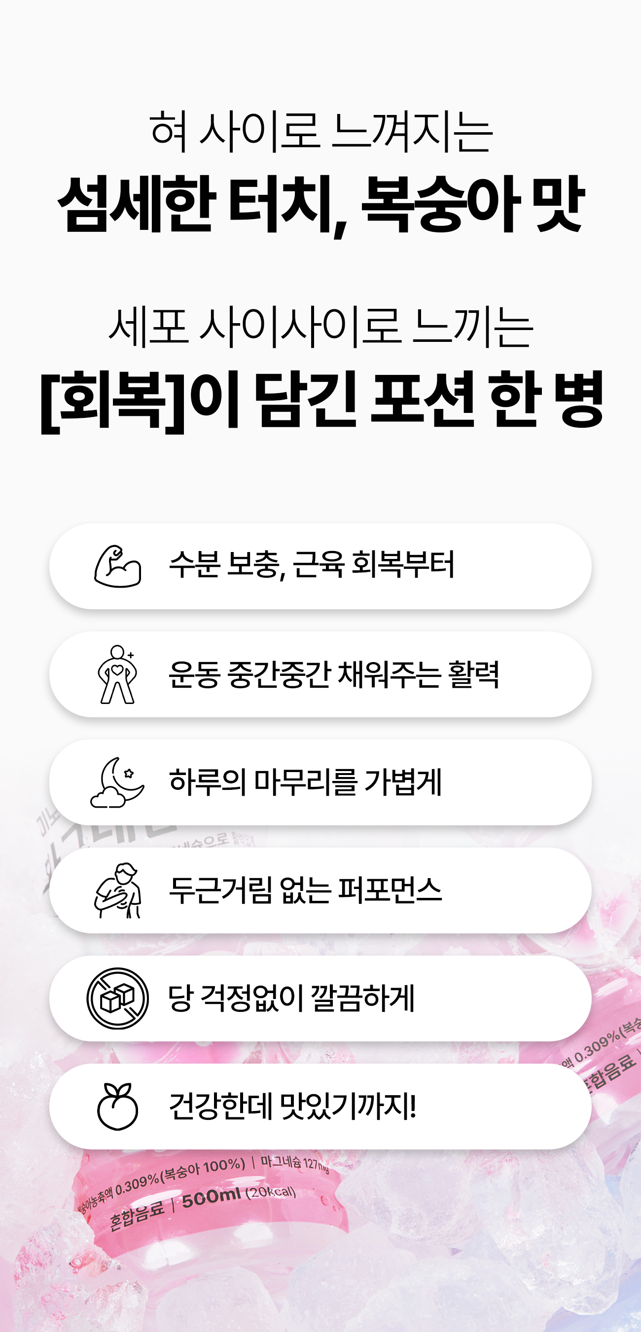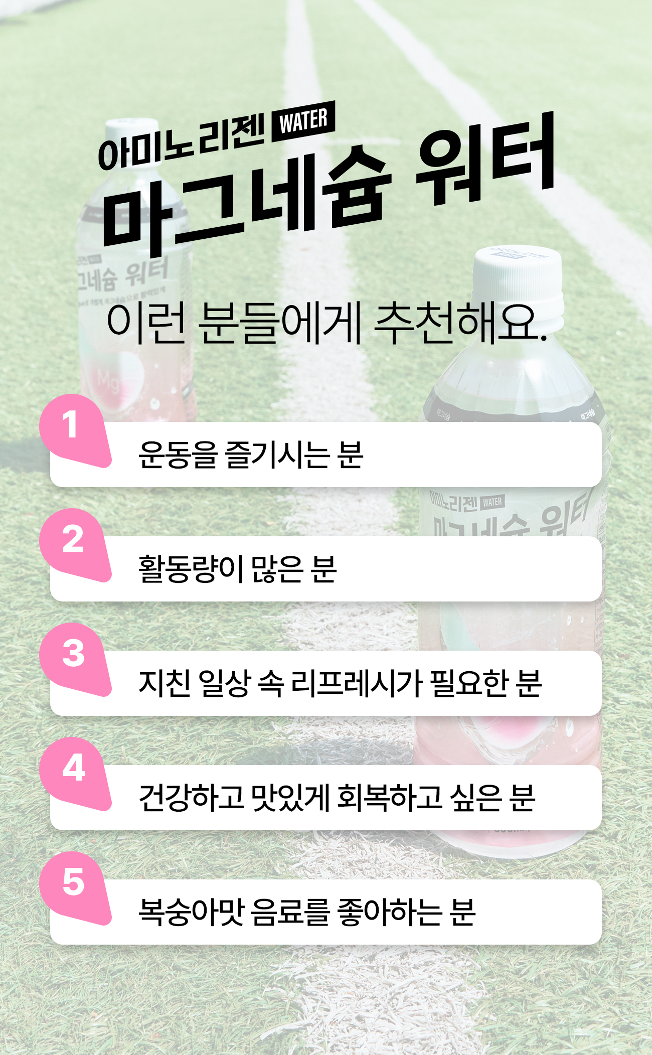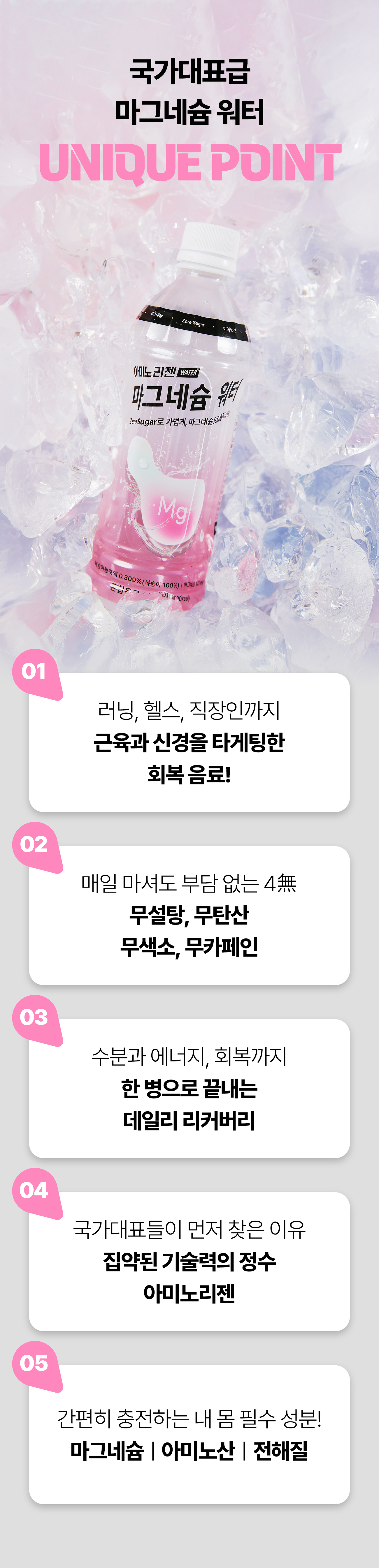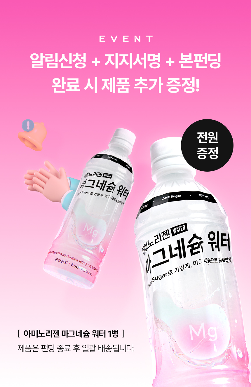 1. 💧 国代表級マグネシウムウォーター - ゼロシュガーで桃味の健康飲料です 2. ⚡ 運動後の回復とエネルギー補充 - 筋肉と神経の回復をサポートします 3. 🎁 支援者全員に製品贈呈 - 80,000ウォン相当の製品を提供します