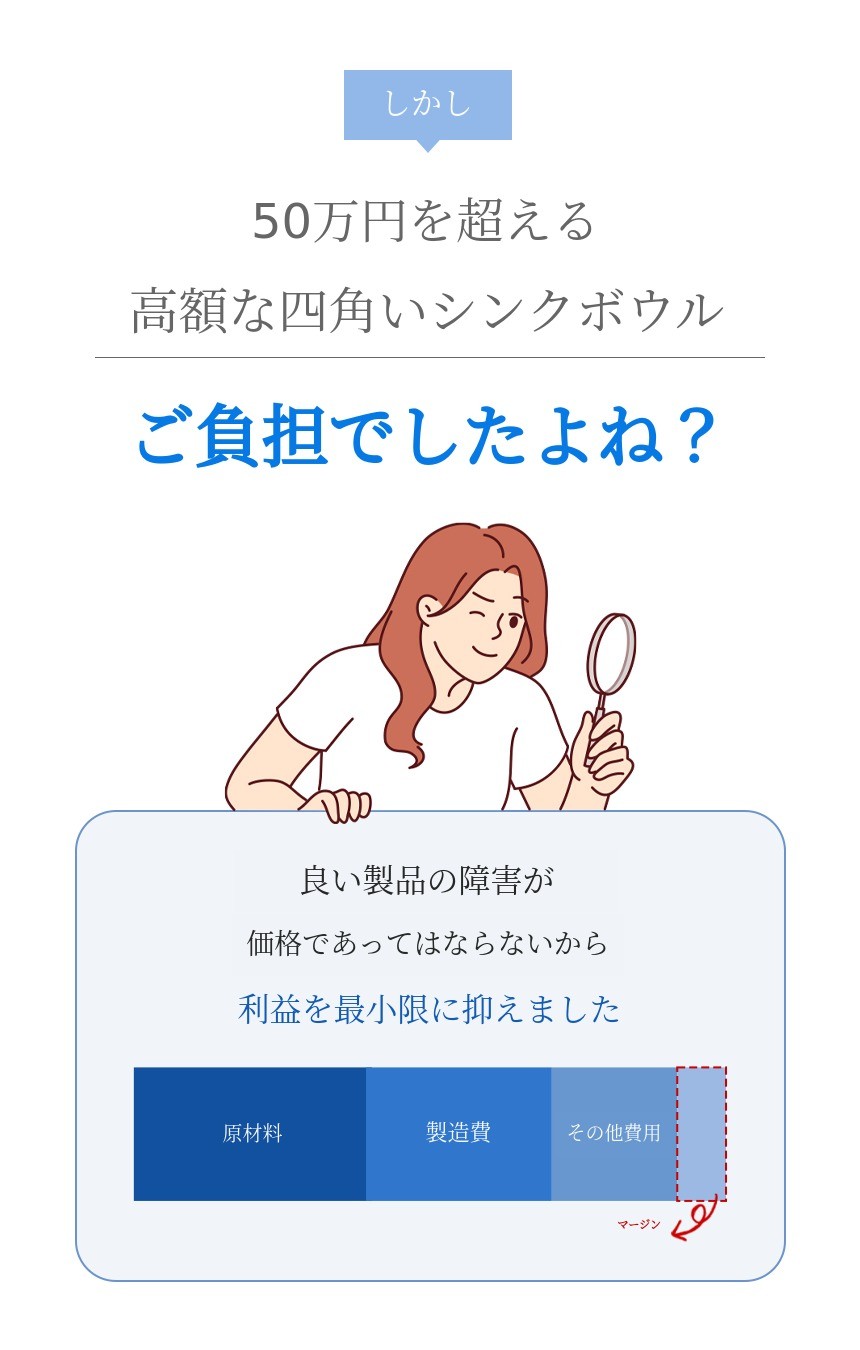 大げさかもしれませんが、四角シンクボウルの大衆化のために誰でも簡単にアクセスできるようにすることが製品開発の目的であり、今後も大衆的な製品開発に力を注ぐ計画です。