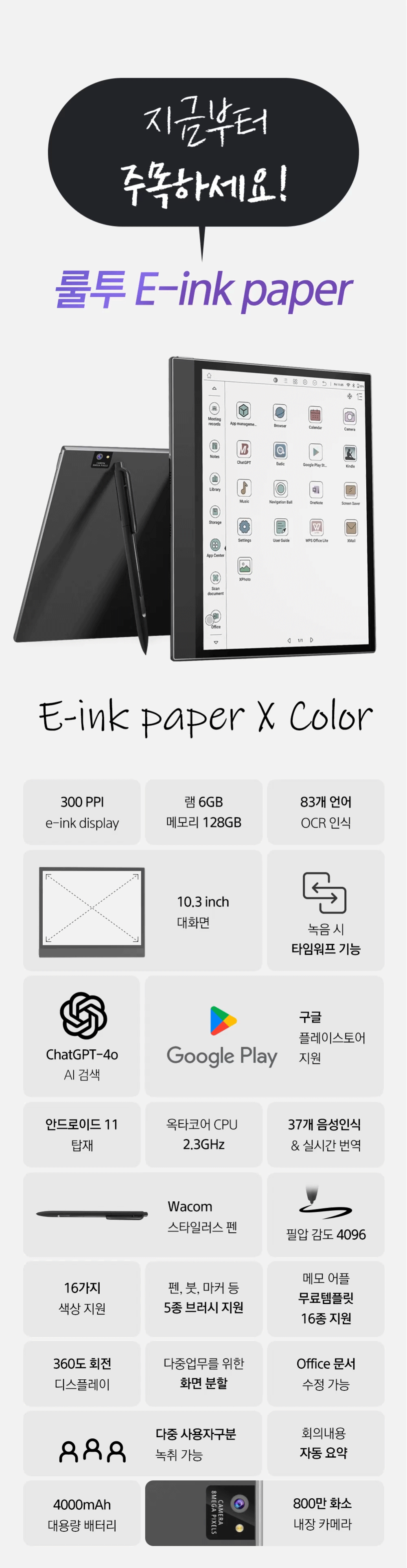 1. 📱 10.3インチカラーE-inkタブレット - 目に優しいKaleido3カラーパネル搭載です 2. 🤖 強力なAIと多言語対応 - リアルタイム音声認識と83言語のOCR対応です 3. 🎁 クラウドファンディング限定割引 - ペンとマグネットケース付きの特別パッケージです