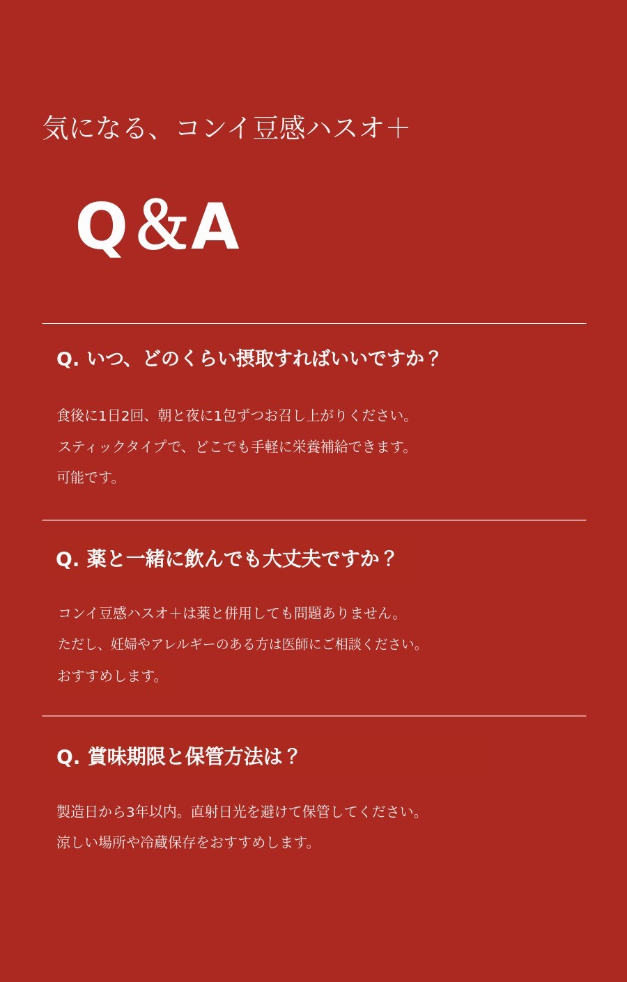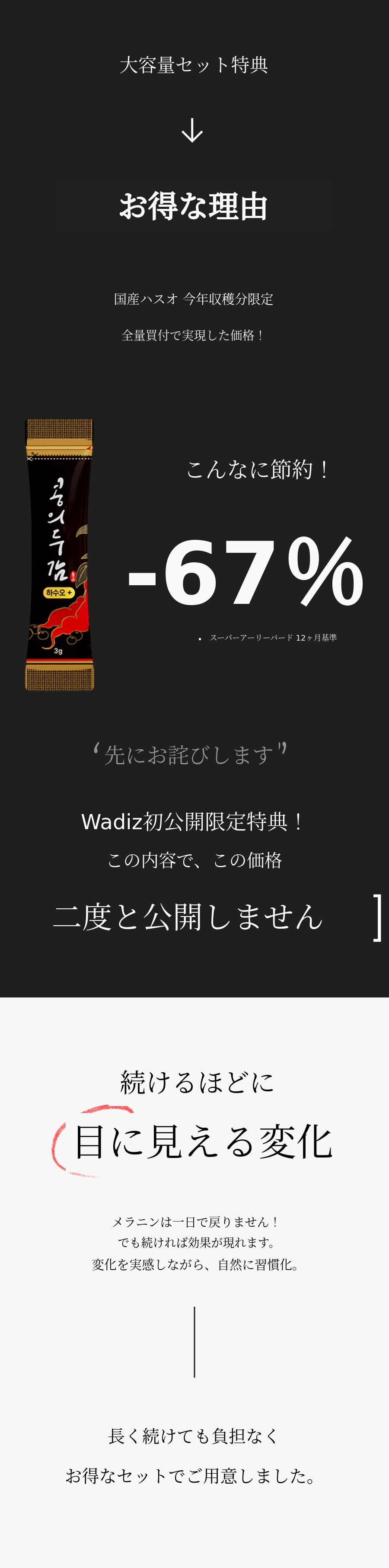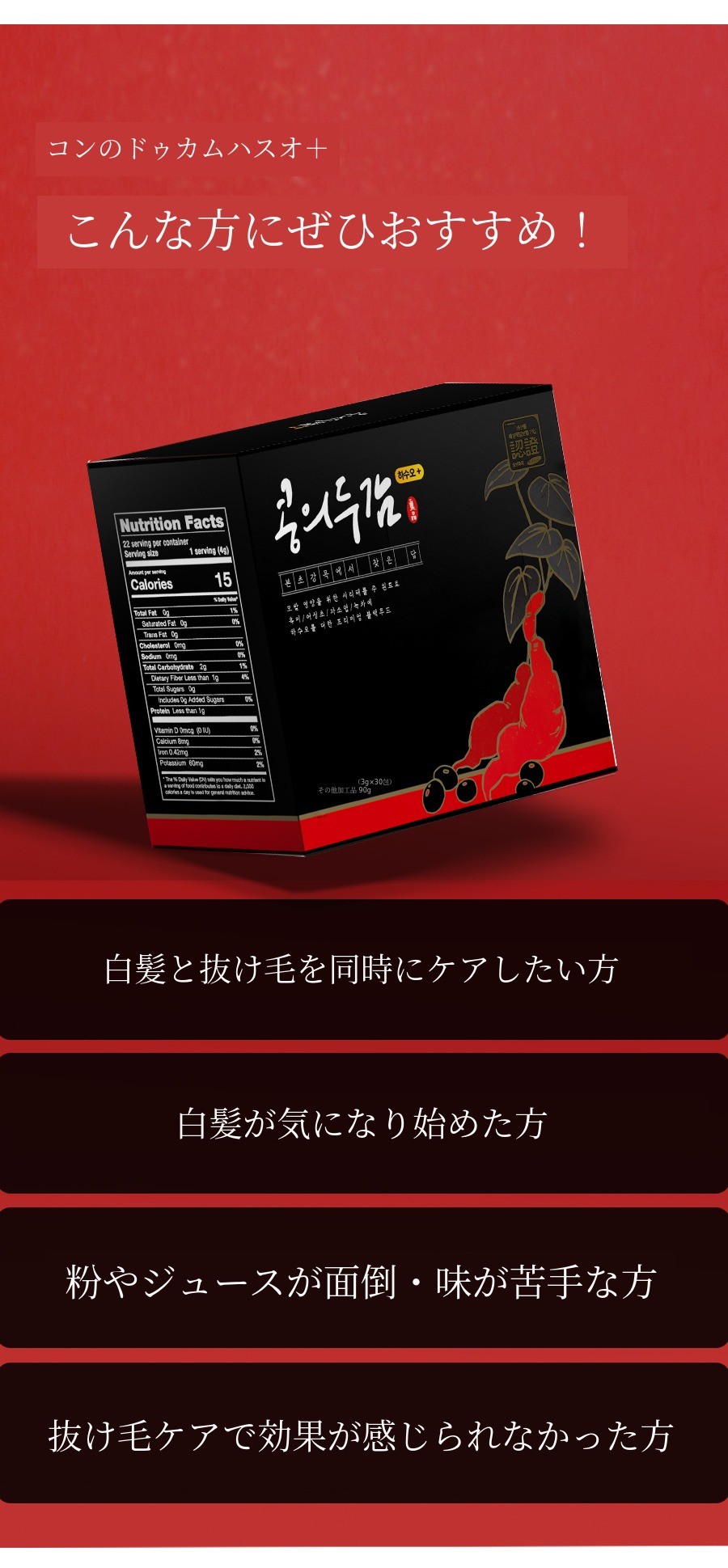 本プロジェクトは、ブラックフードを毎日しっかり摂取できない忙しい現代人のために、国産ソリテをベースにブラックフードの利点とインナービューティーを追求する私たちの信念が込められたプロジェクトです。特にハスオウは私たちが簡単に出会えない食品です。テッカハスオウの場合、その優秀さに比べて一般の方々に広く知られていないのがとても残念でした。そこで33年の経験を持つ薬剤師と本プロジェクトを設計し、深く研究しました。
