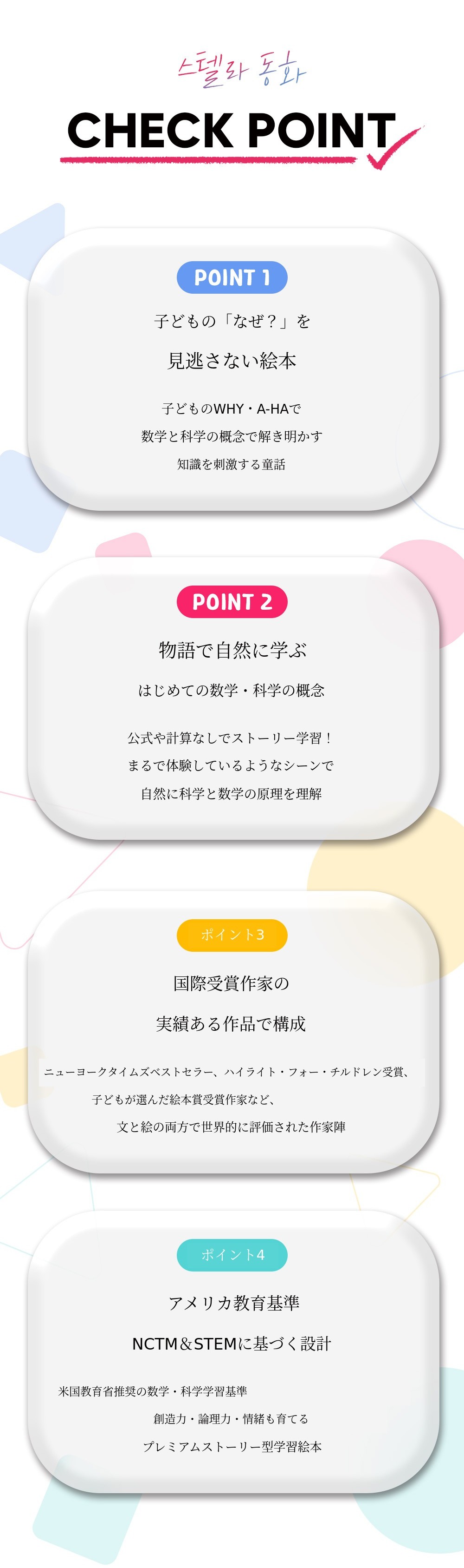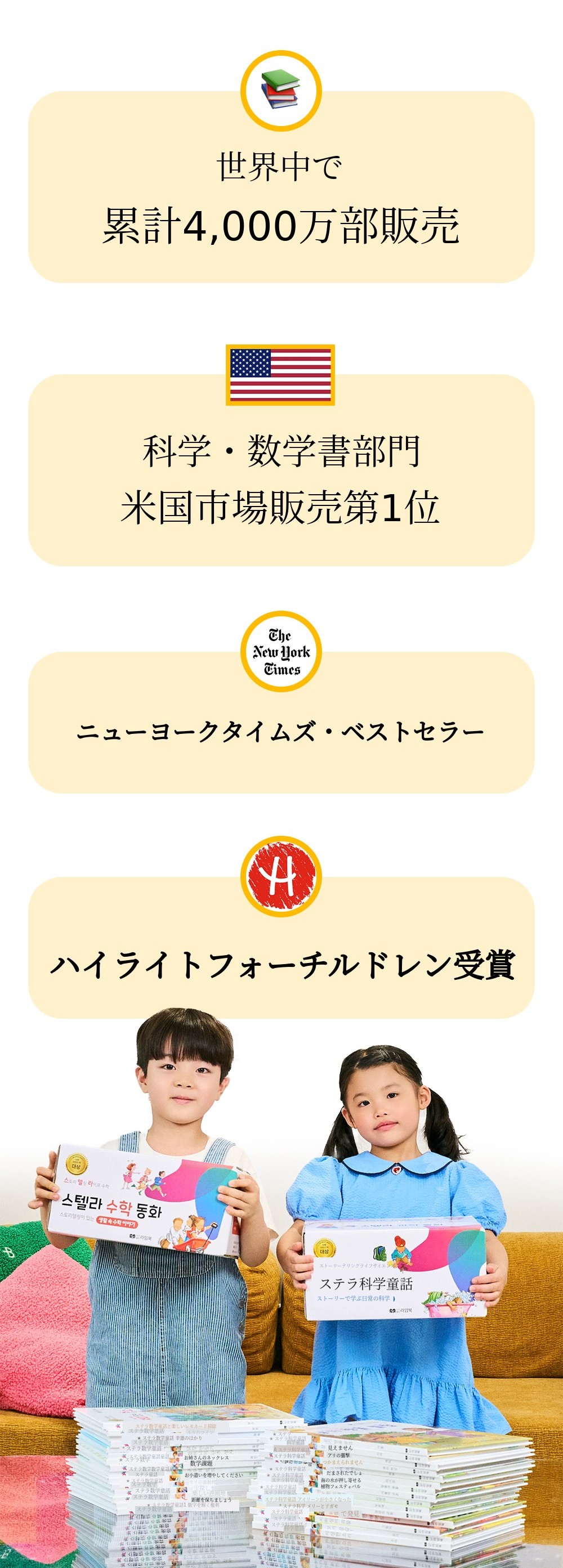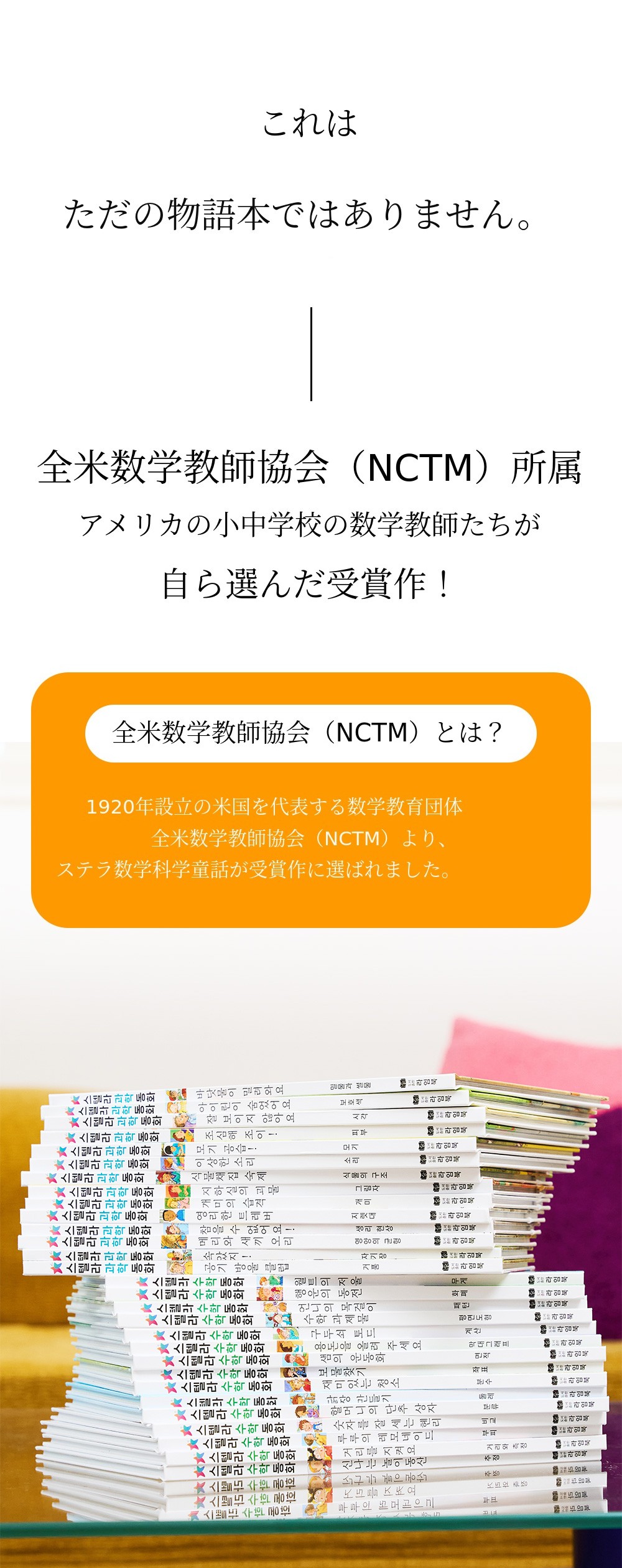 2025年6月、ライムブックは1920年に設立されたアメリカ全国数学教師協議会(NCTM)で大賞を受賞した世界的な数学・科学童話シリーズであるステラ数学・科学童話を、国内で初めて正式にローンチし大きな話題となりました。このシリーズは、子どもたちが難しく感じる数学や科学の概念を興味深く創意的な物語で解き明かし、自然に概念を身につけ、思考力を育てられるよう構成されている点で高い評価を受けています。