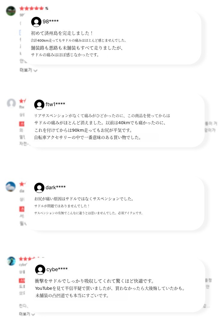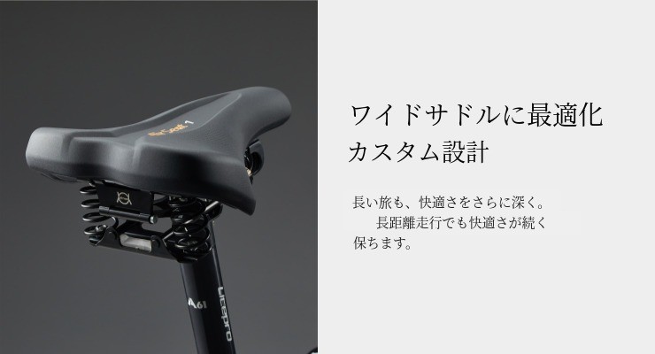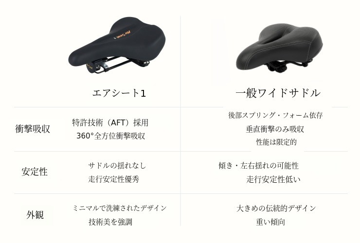 A : 一般的なスプリングサドルに比べてクッション性が高く、左右の揺れもなくより安定してライディングできます。