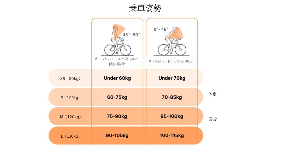 体重によってオプションが変わり
