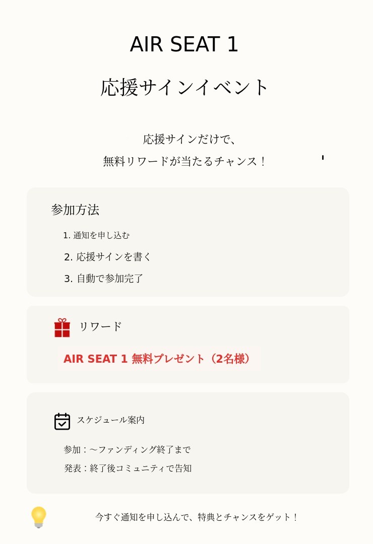 AIR SEAT 1の通知を申し込んでください!