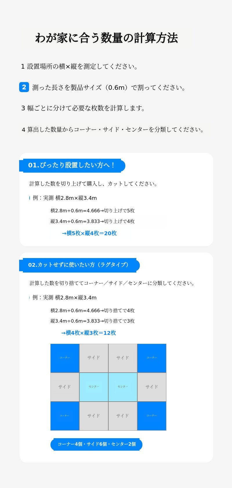 パズルマットの数量はこのように計算します