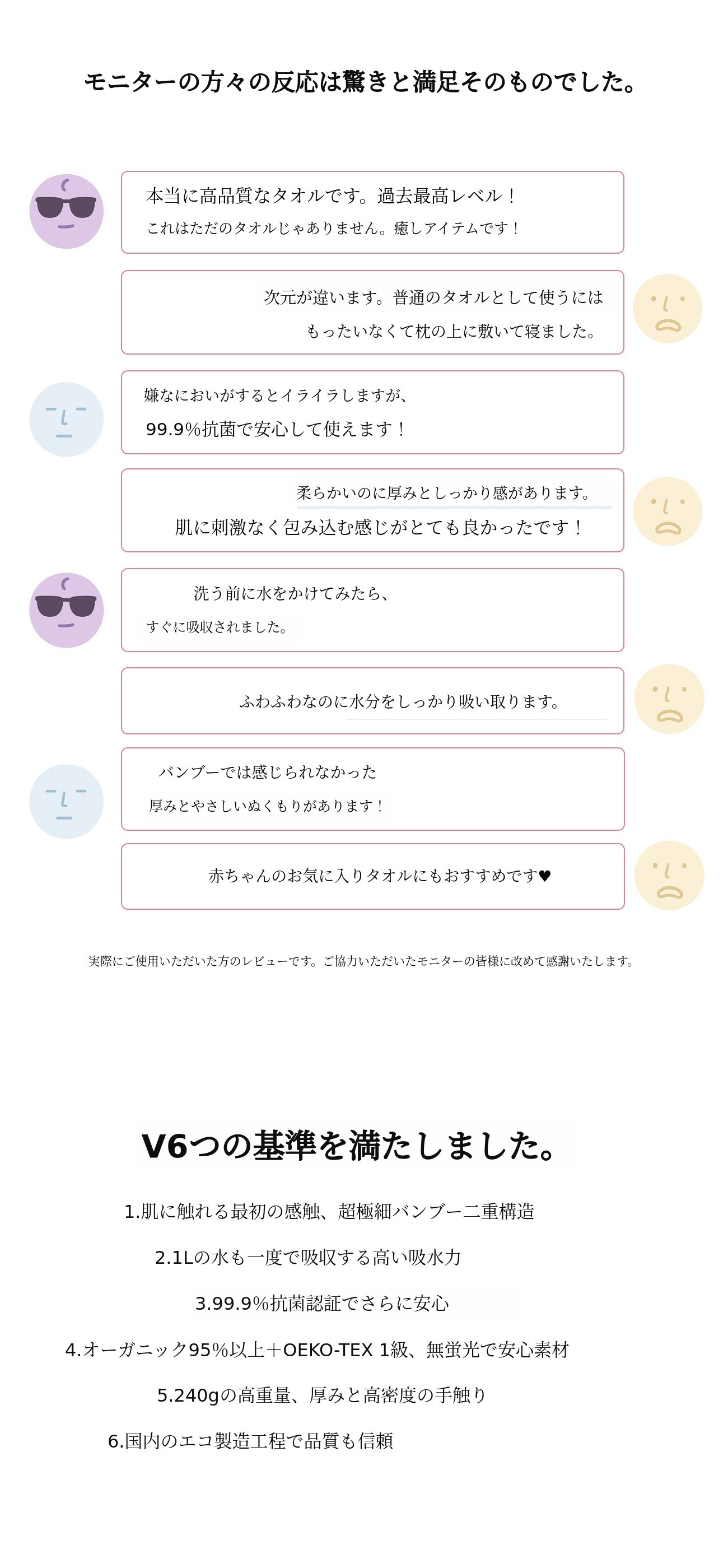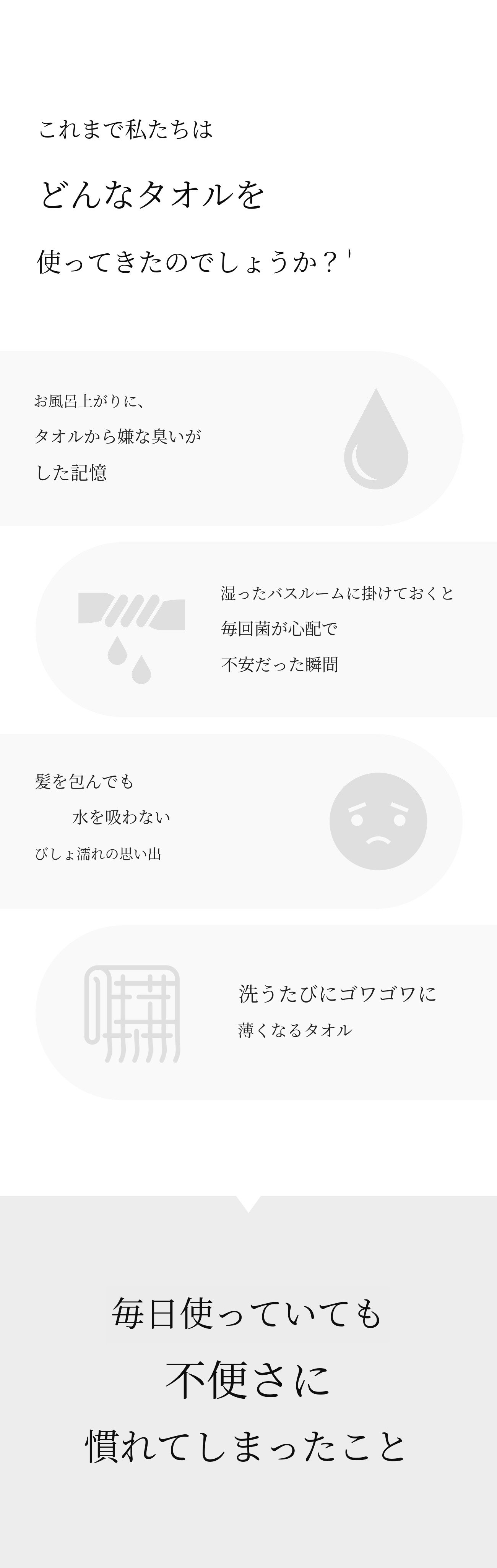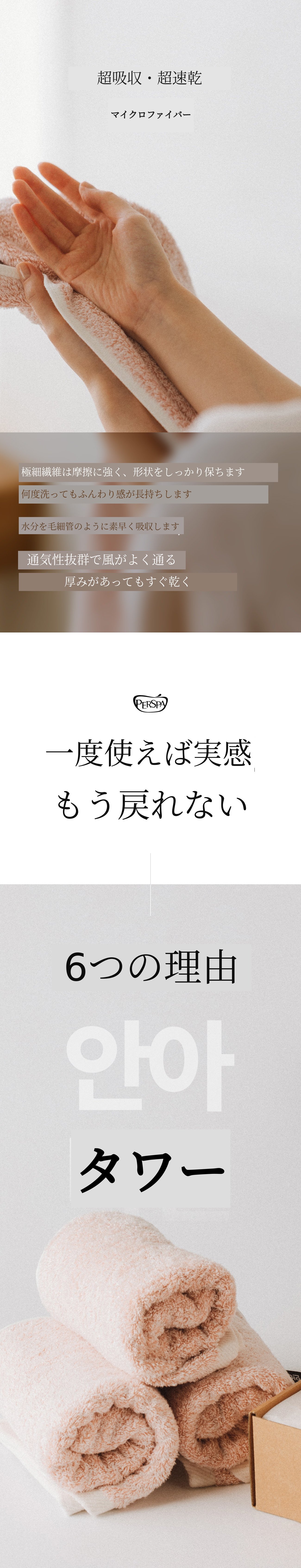 従来のタオルに満足できなかった点を考え、今まで感じたことのない柔らかさと吸収力を兼ね備えたプレミアム