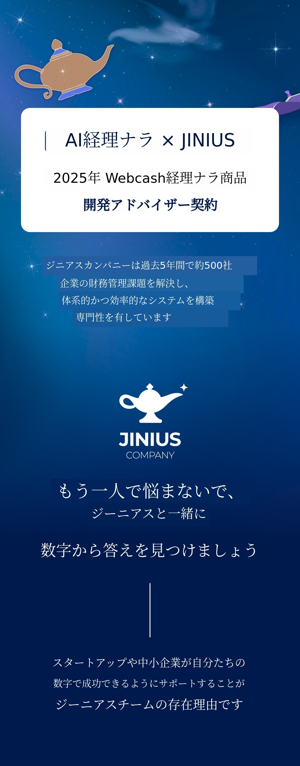 もう一人で悩んでいた財務の悩みを、ジニアスと一緒に解決し、体系的に成長できる機会 を享受してください。私たちが積み重ねてきた経験とノウハウが、少しでも多くの方々の実務に届くことを心から願っています。