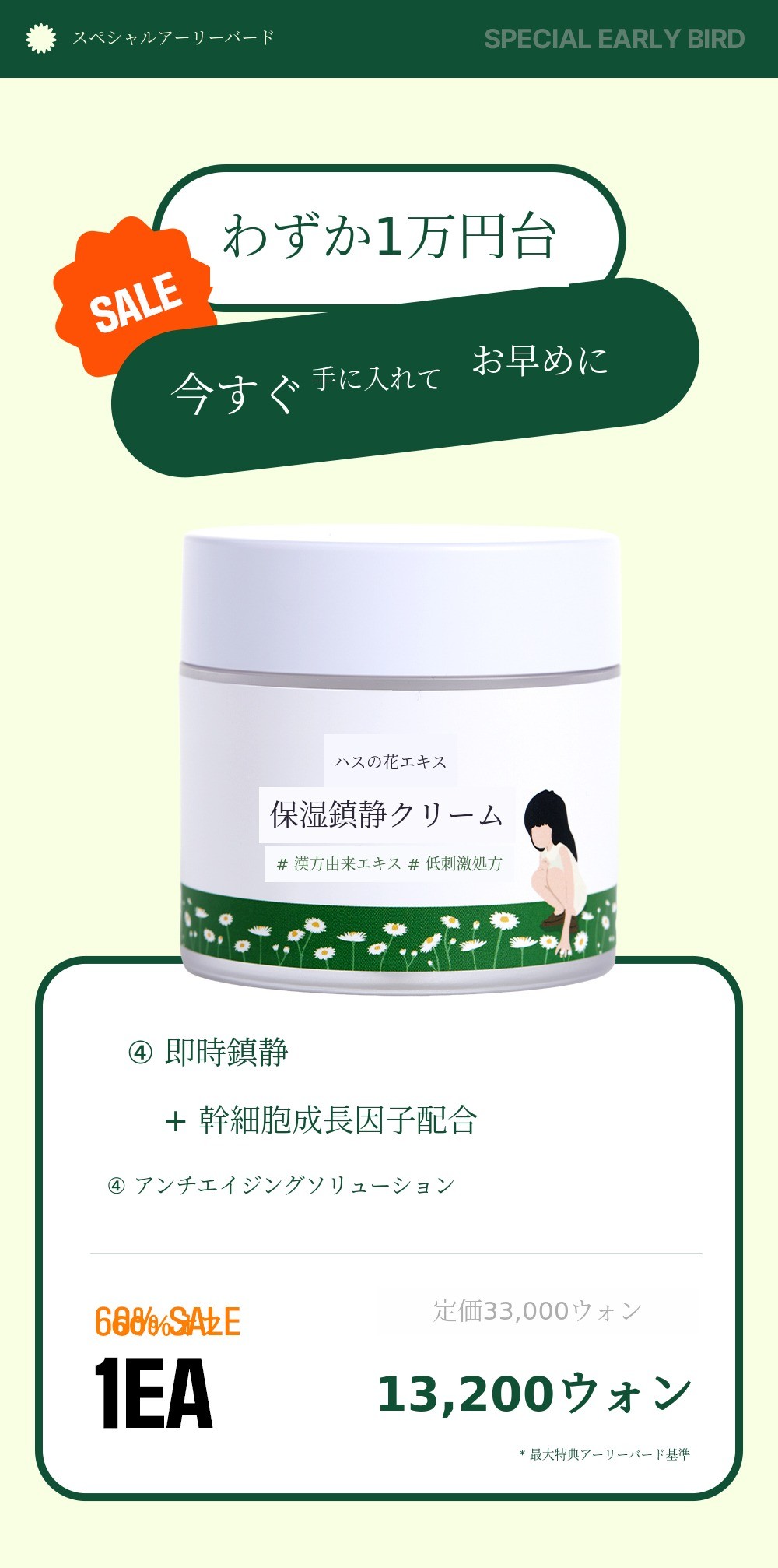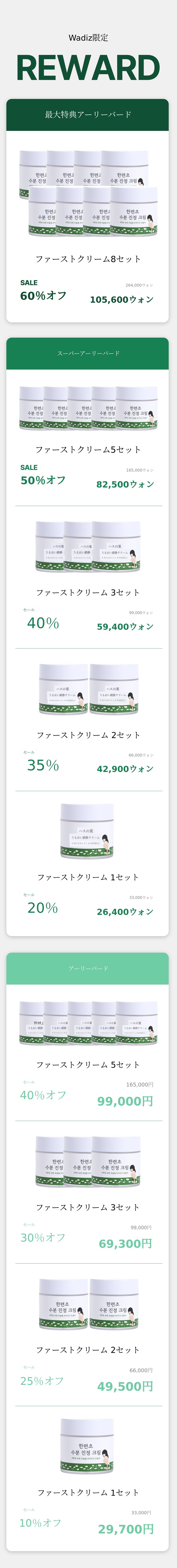 最大特典アーリーバード基準で8個購入時の1個価格を明記したバナーです。