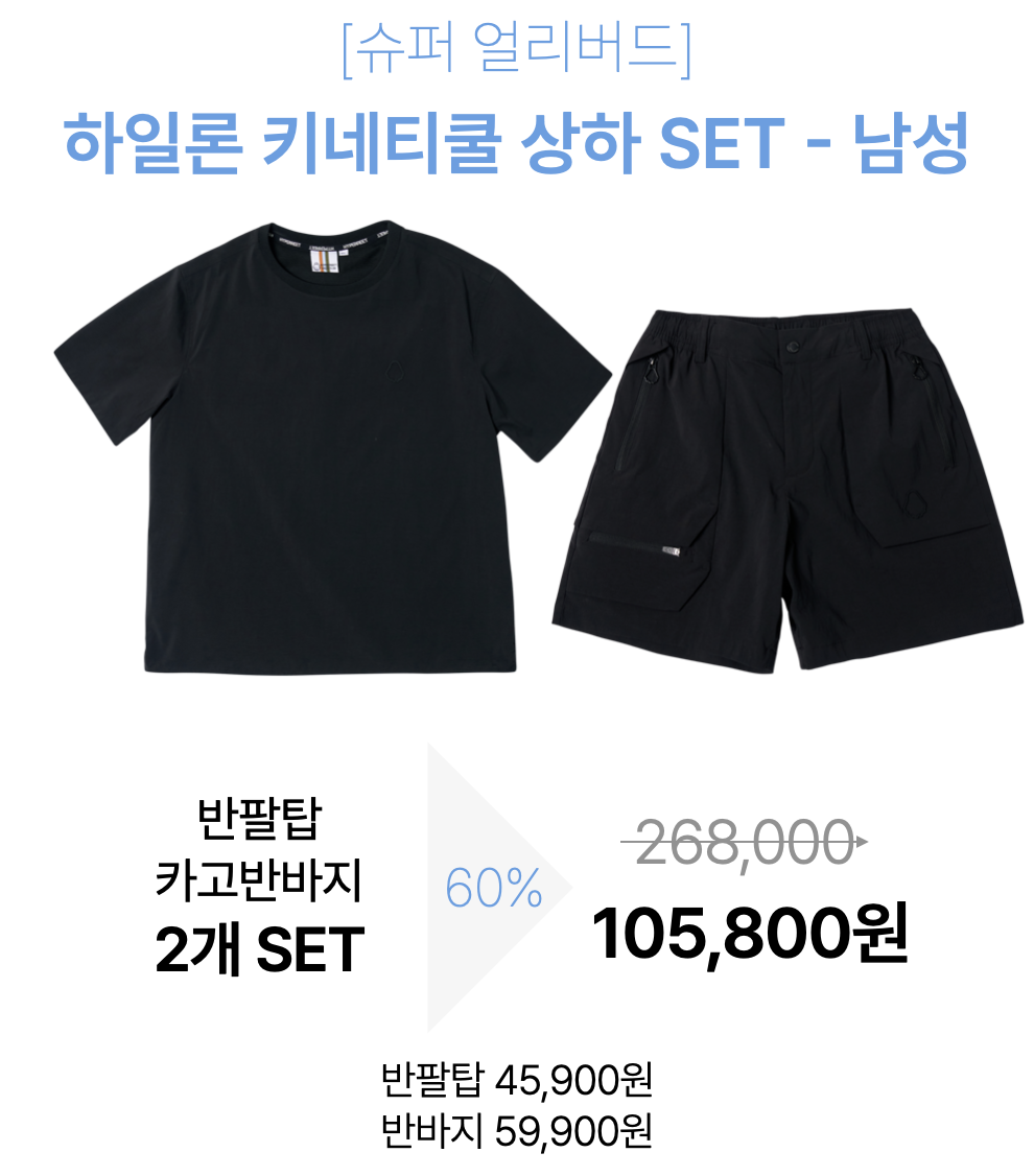 [반팔탑 + 카고 반바지 : 매트블랙 컬러]
