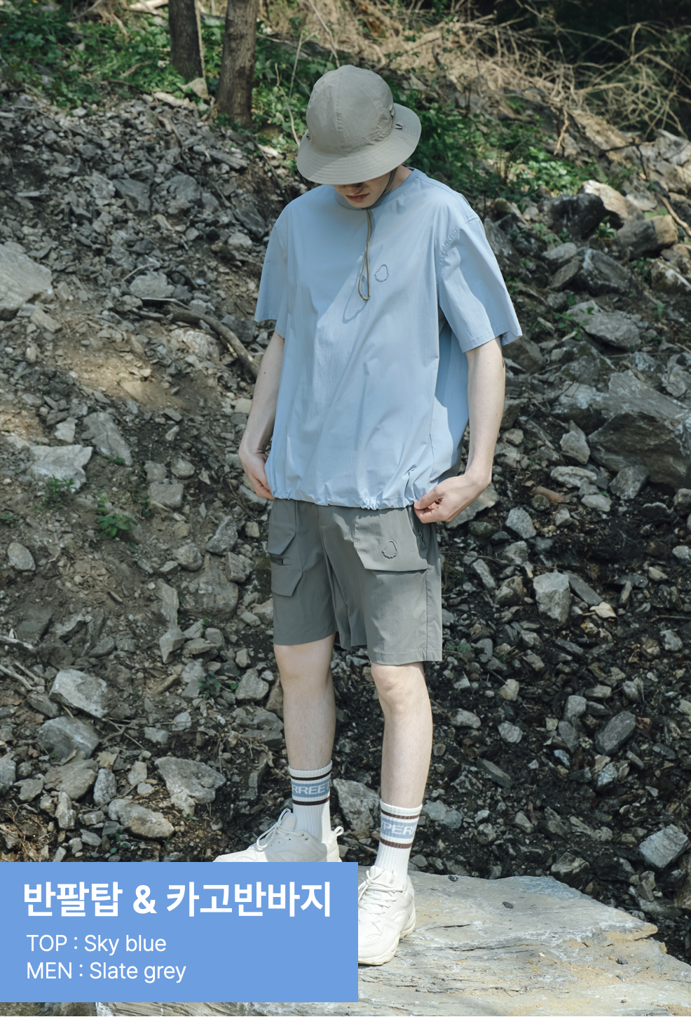 [반팔탑 + 카고 반바지 : 스카이블루 + 슬레이트그레이 컬러]
