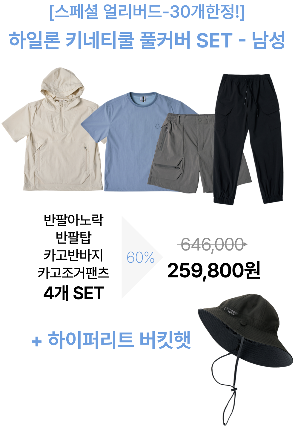 [반팔아노락 + 카고조거팬츠 : 매트블랙 컬러]